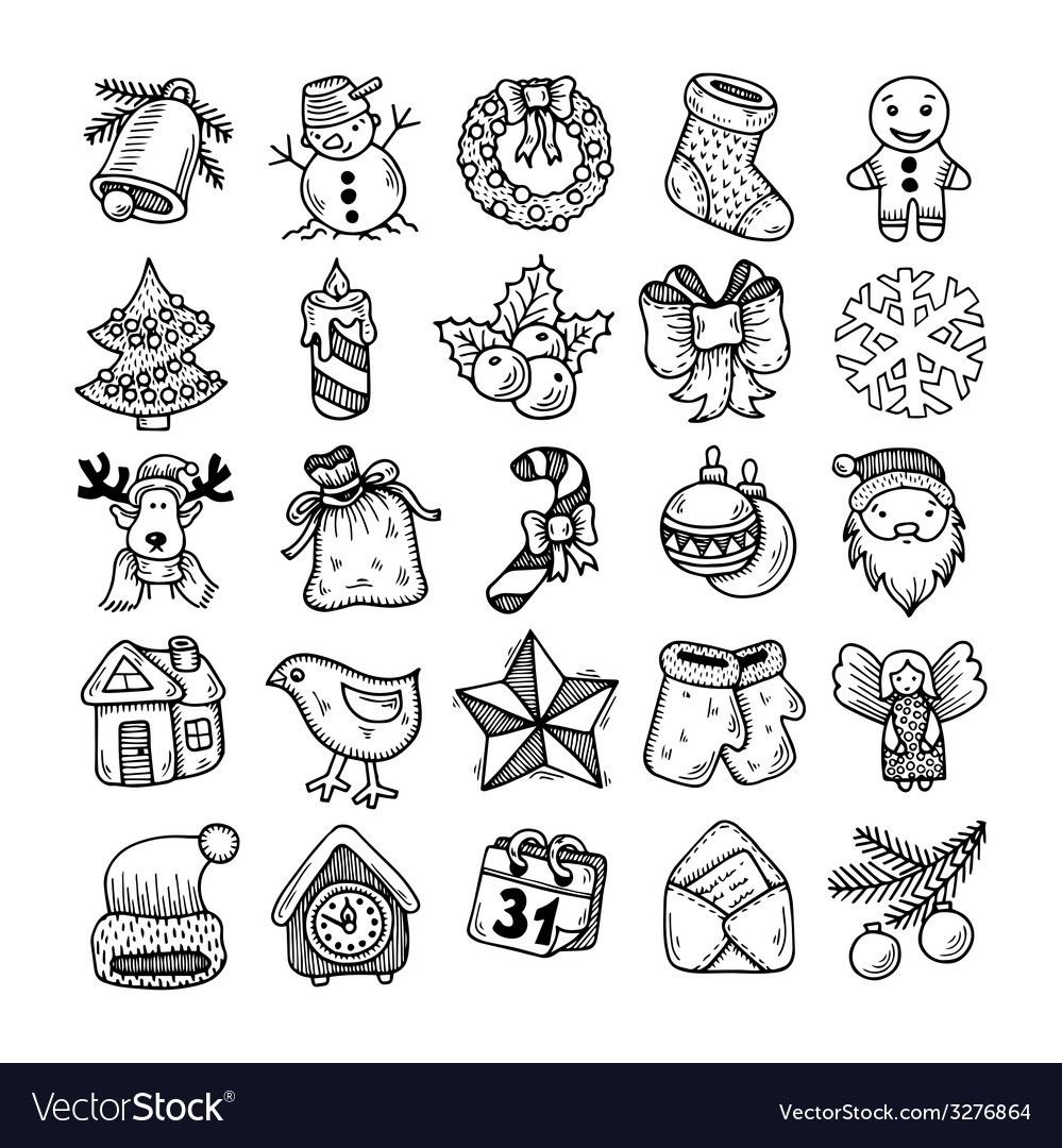 Маленькие новогодние рисунки для срисовки