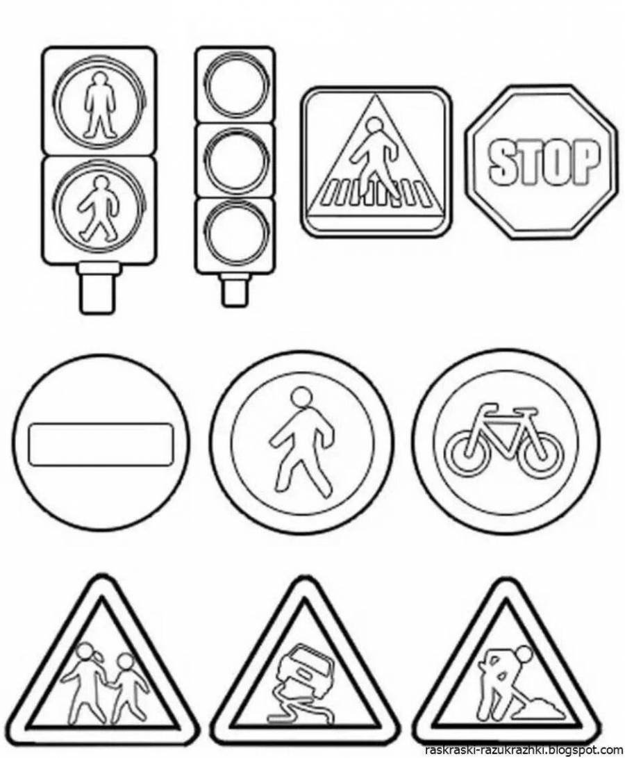 Знаки дорожного движения для раскрашивания для детей