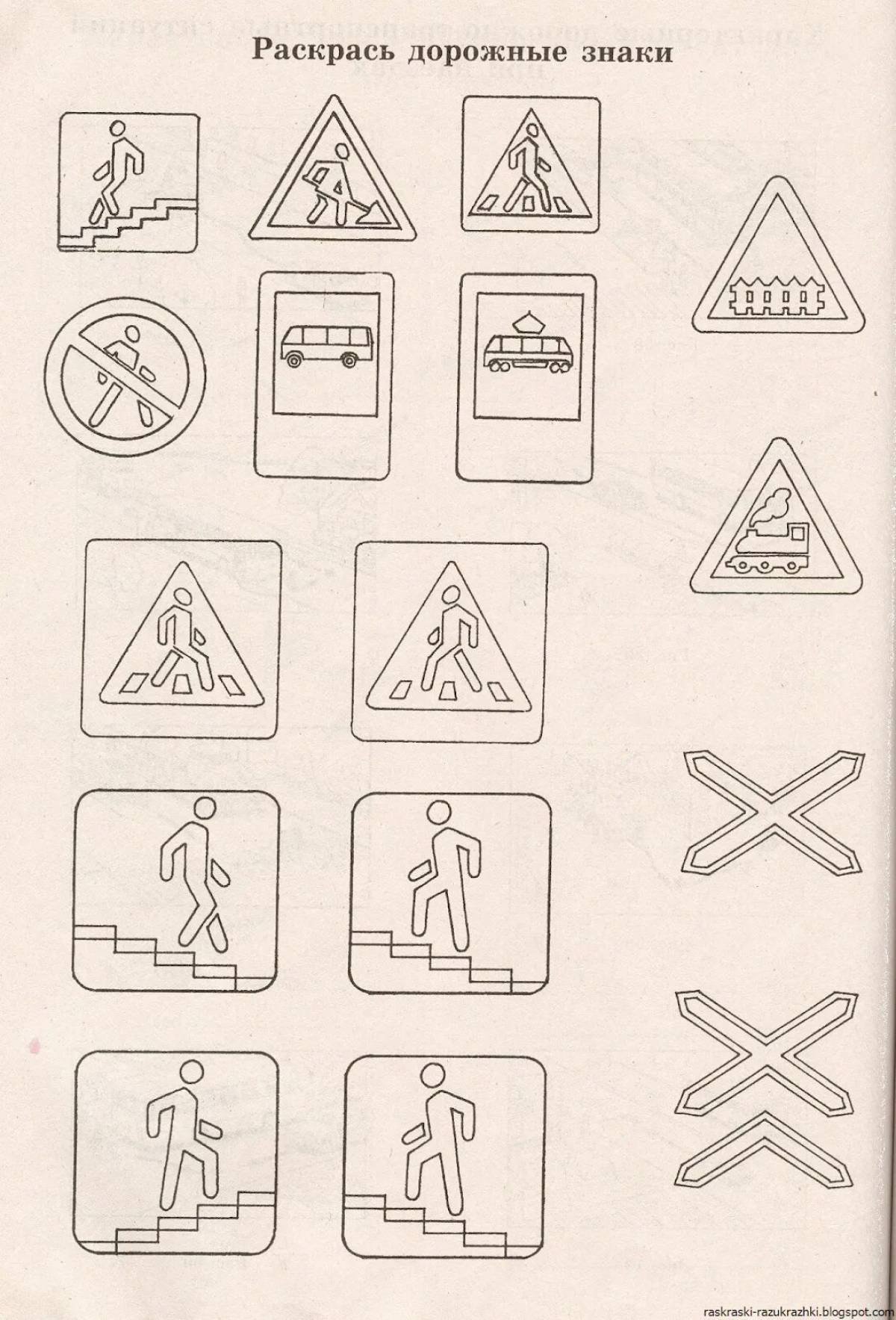 Раскраски дорожные знаки для детей пешех
