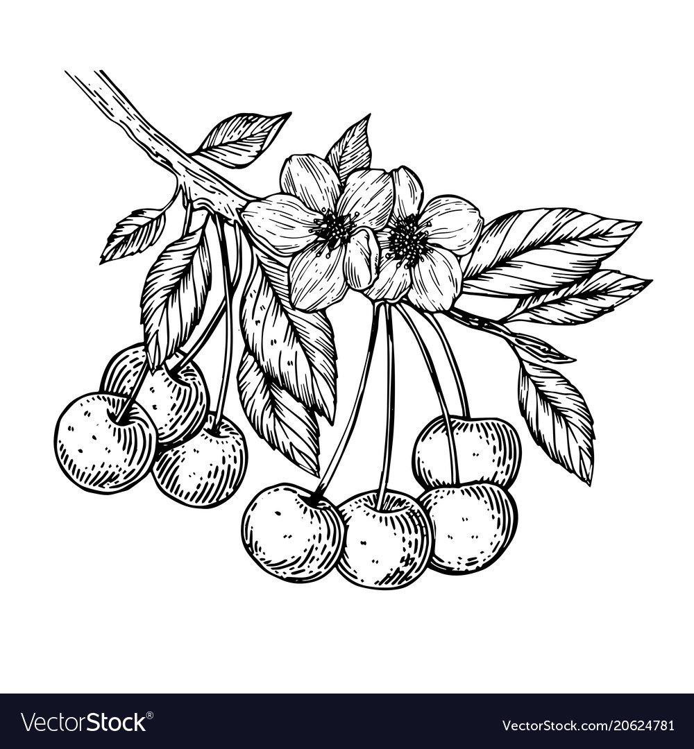 Эскиз дерева вишни