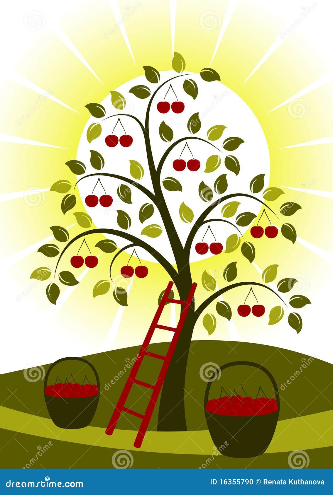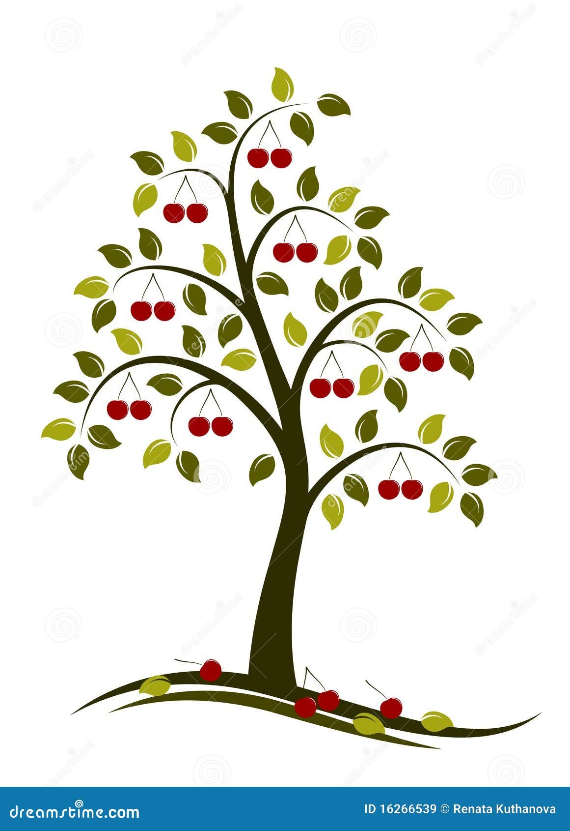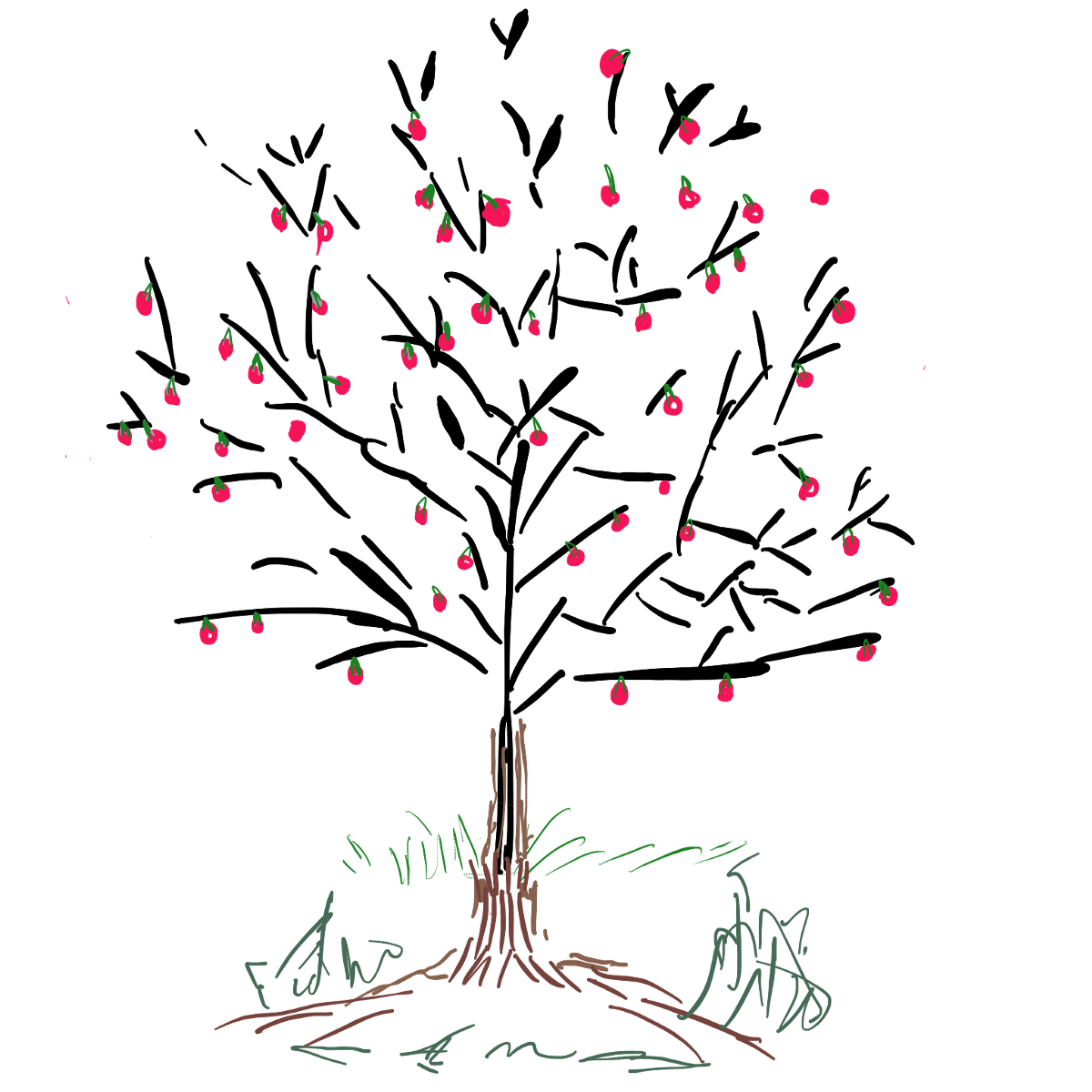 Нарисованное дерево с вишенками