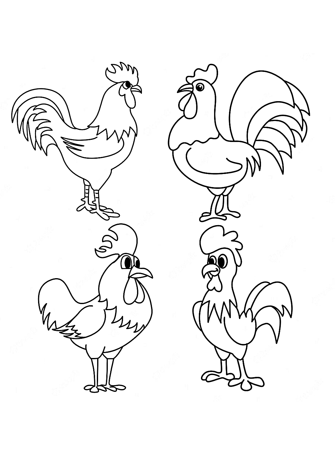 Курица петух цыплята раскраска