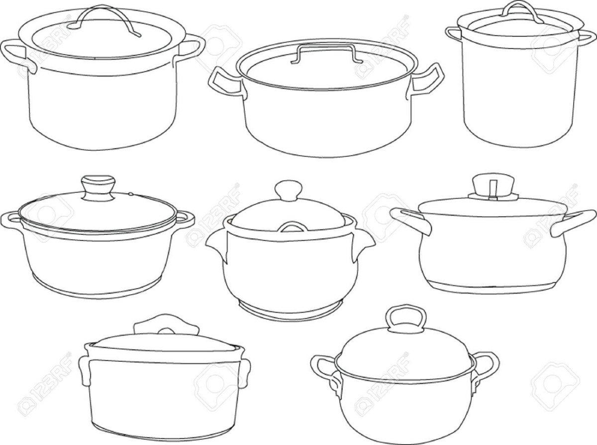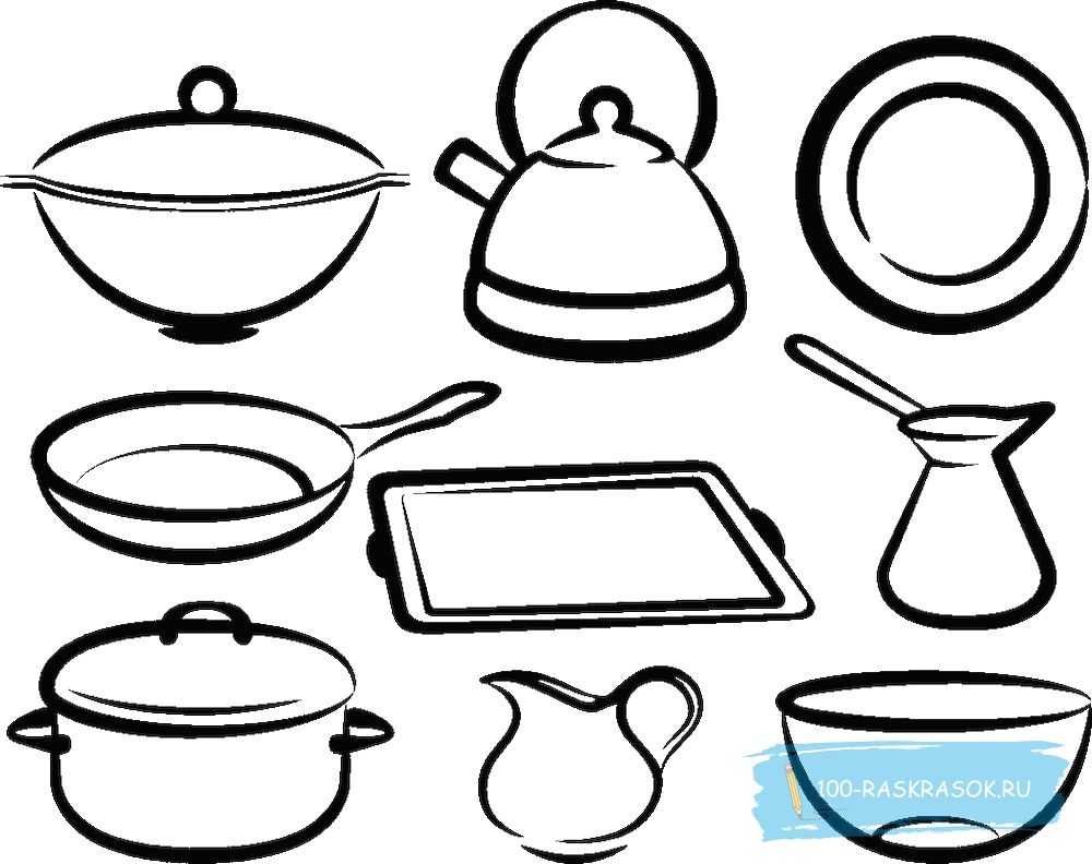 Кухонная посуда раскраска для детей