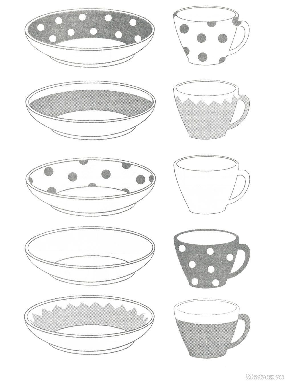 Задания для детей подобрать чашку к блюдцу