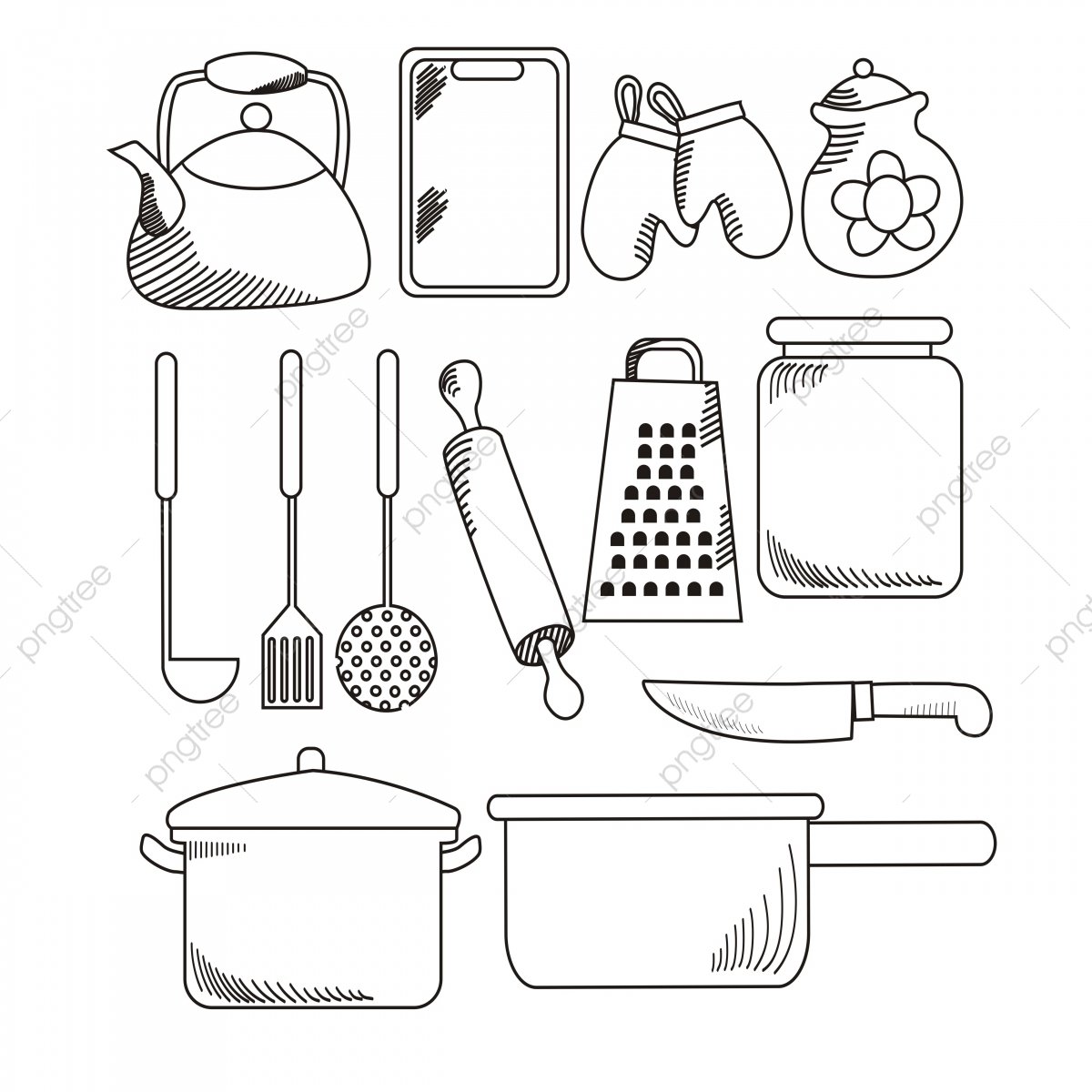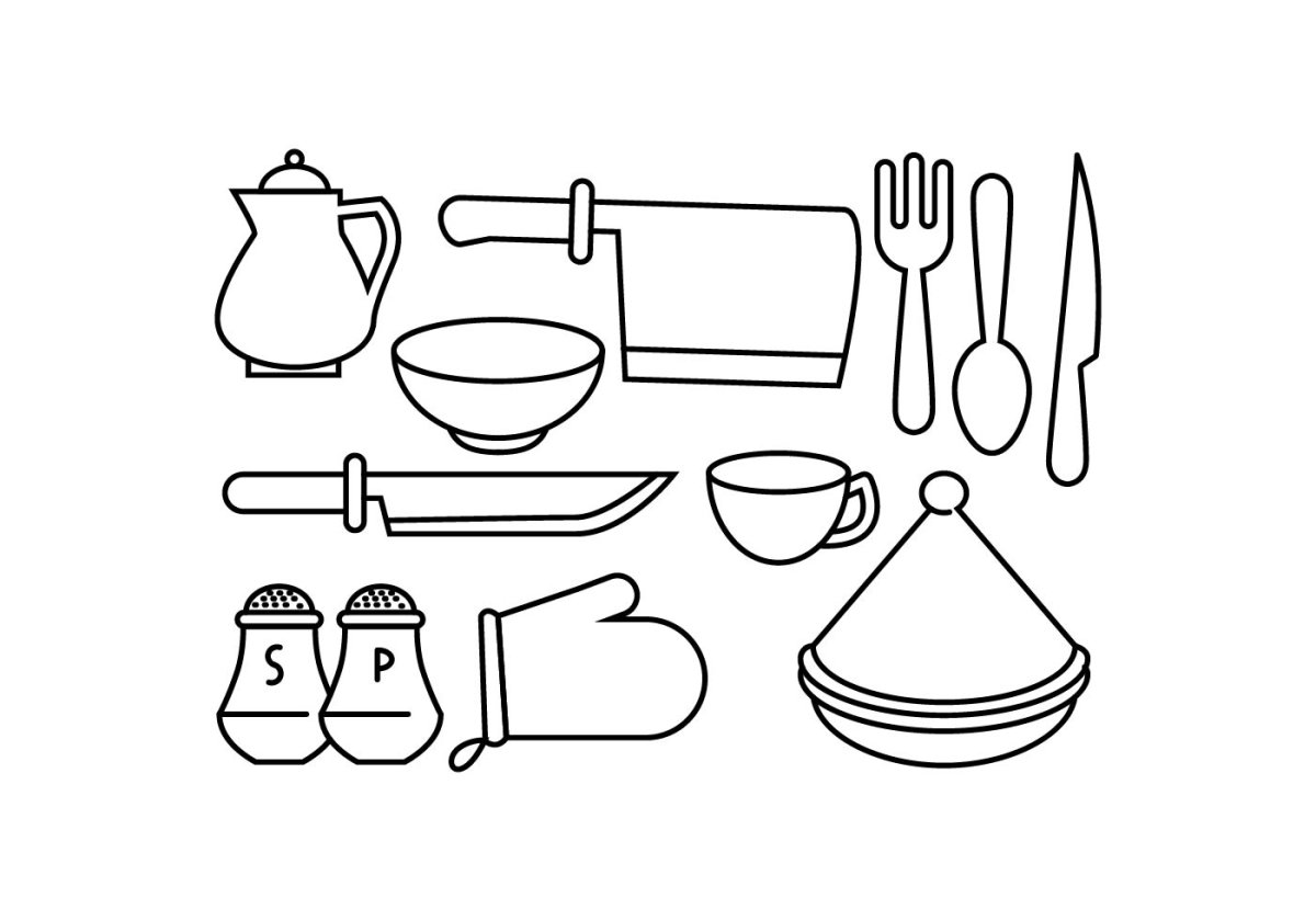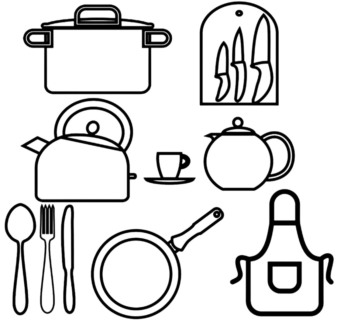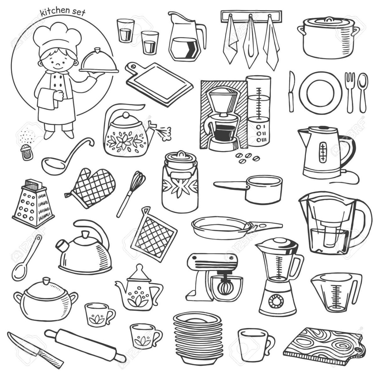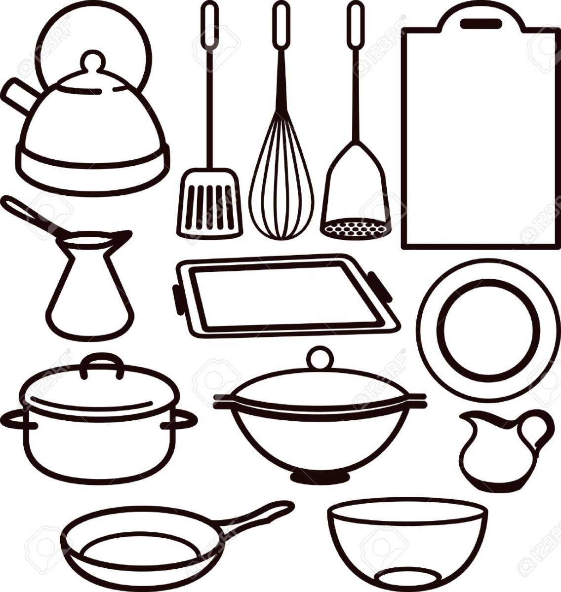 Раскраска кухонные принадлежности