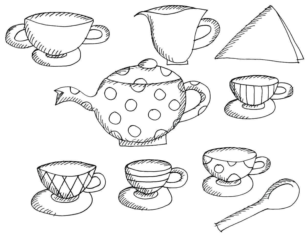 Раскраска чайный сервиз для детей