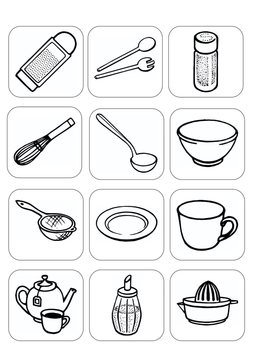 Кухонные принадлежности для детей для распечатки