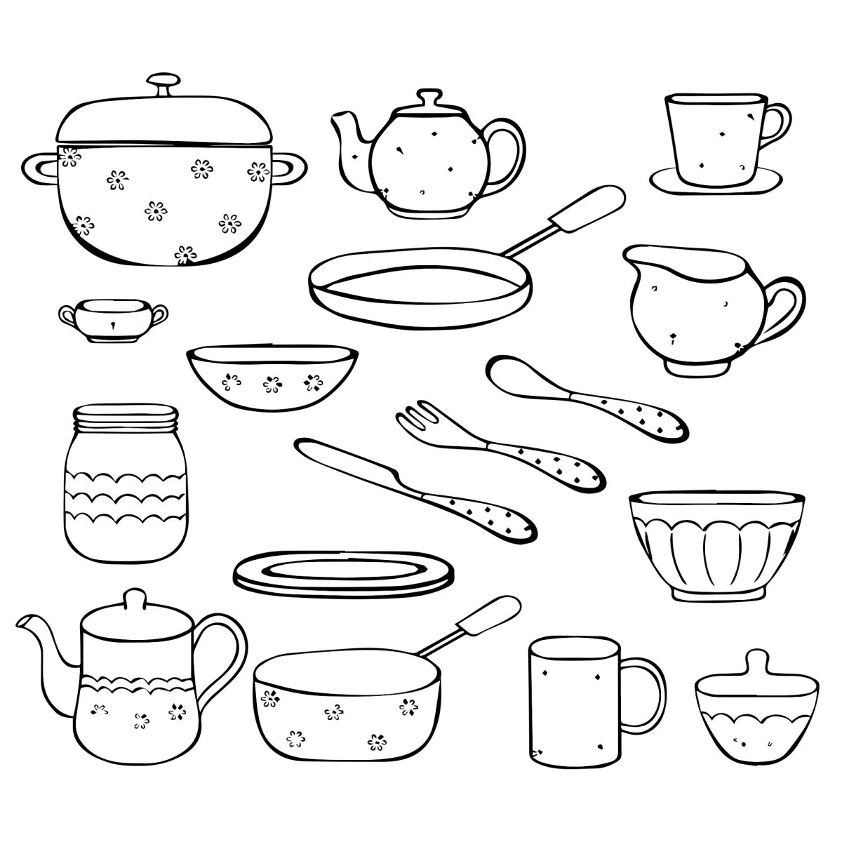 Раскраска кухонная посуда