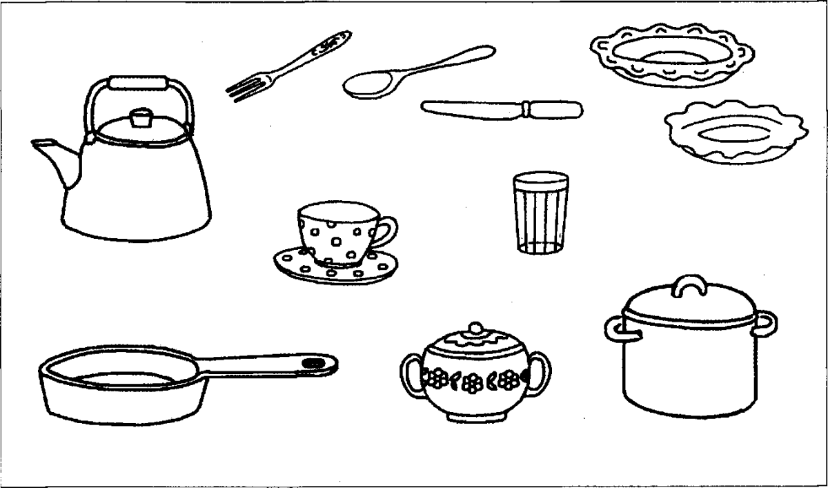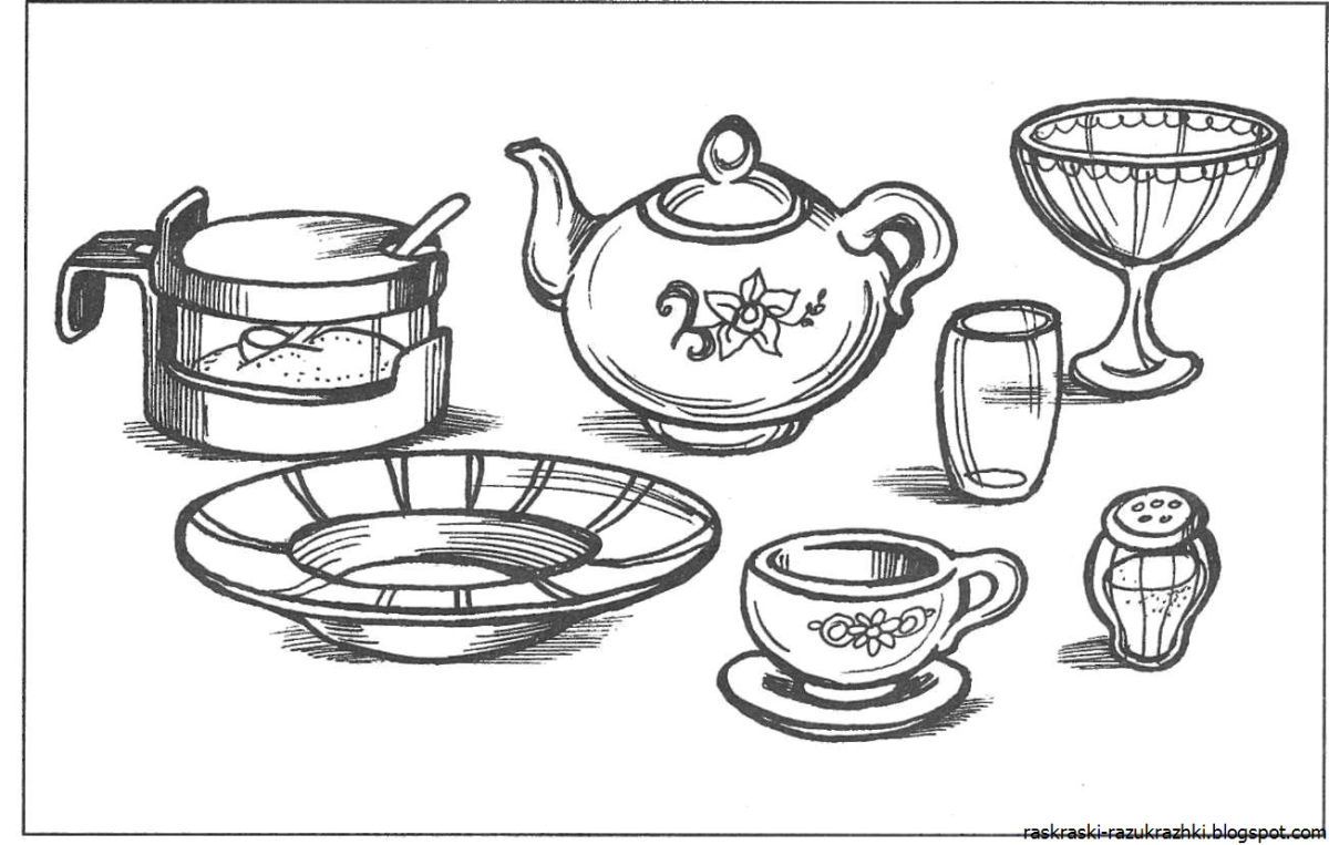 Посуда для дошкольников раскраска