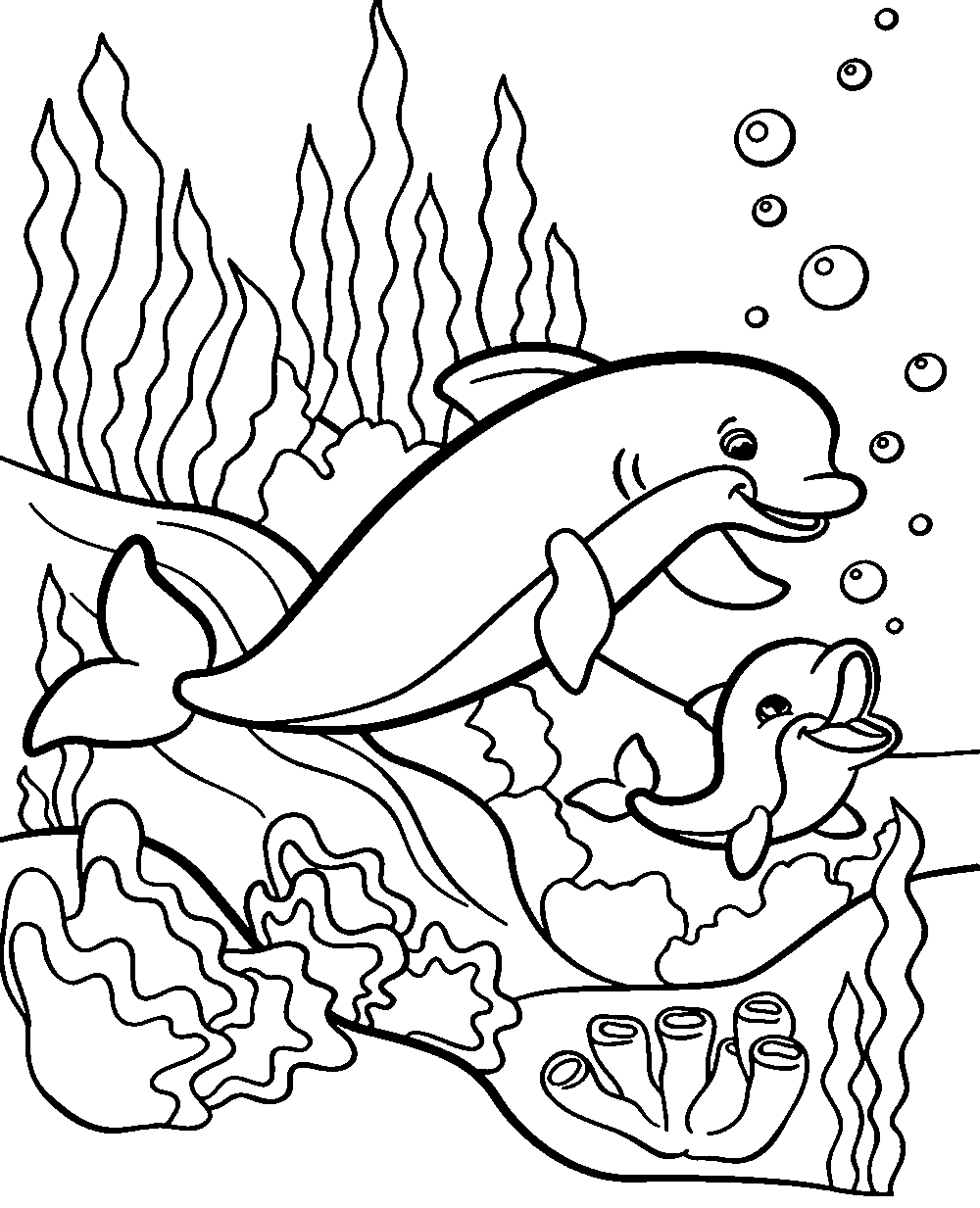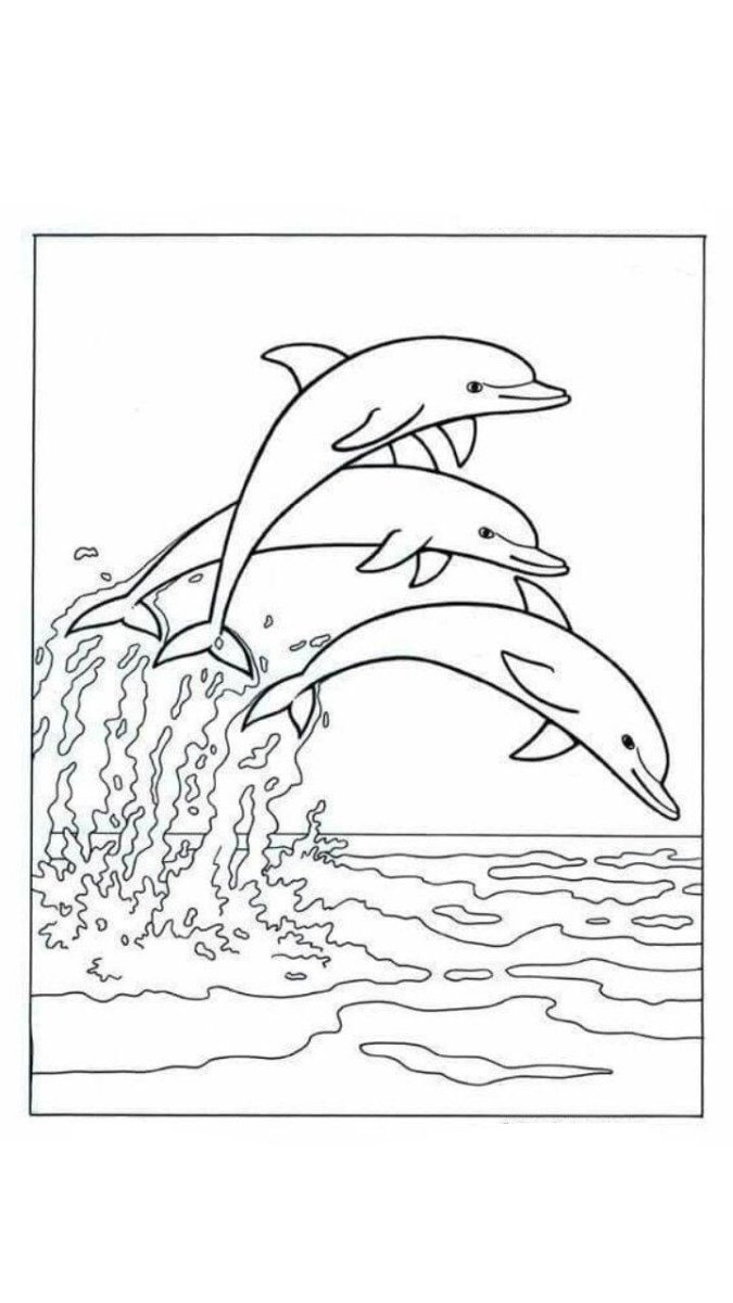 Раскраска дельфины в море