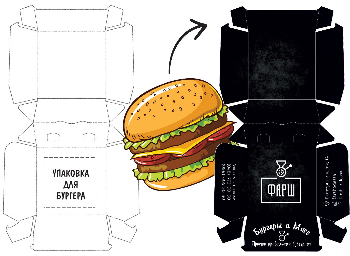 Коробка для бургера развертка
