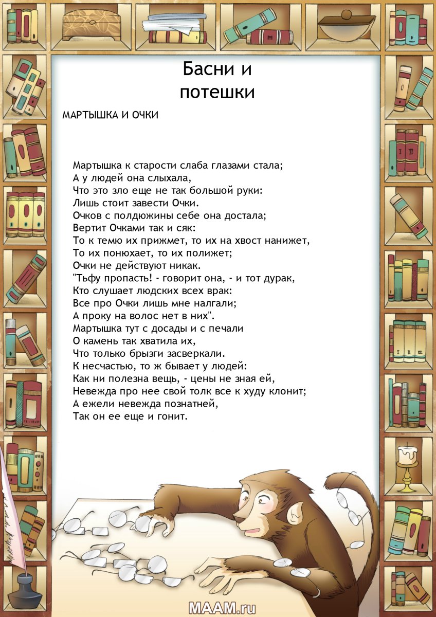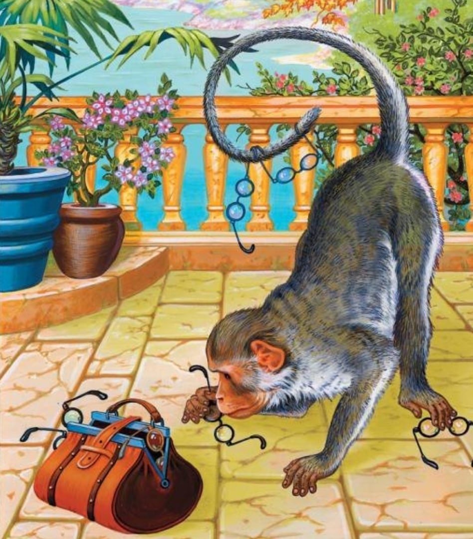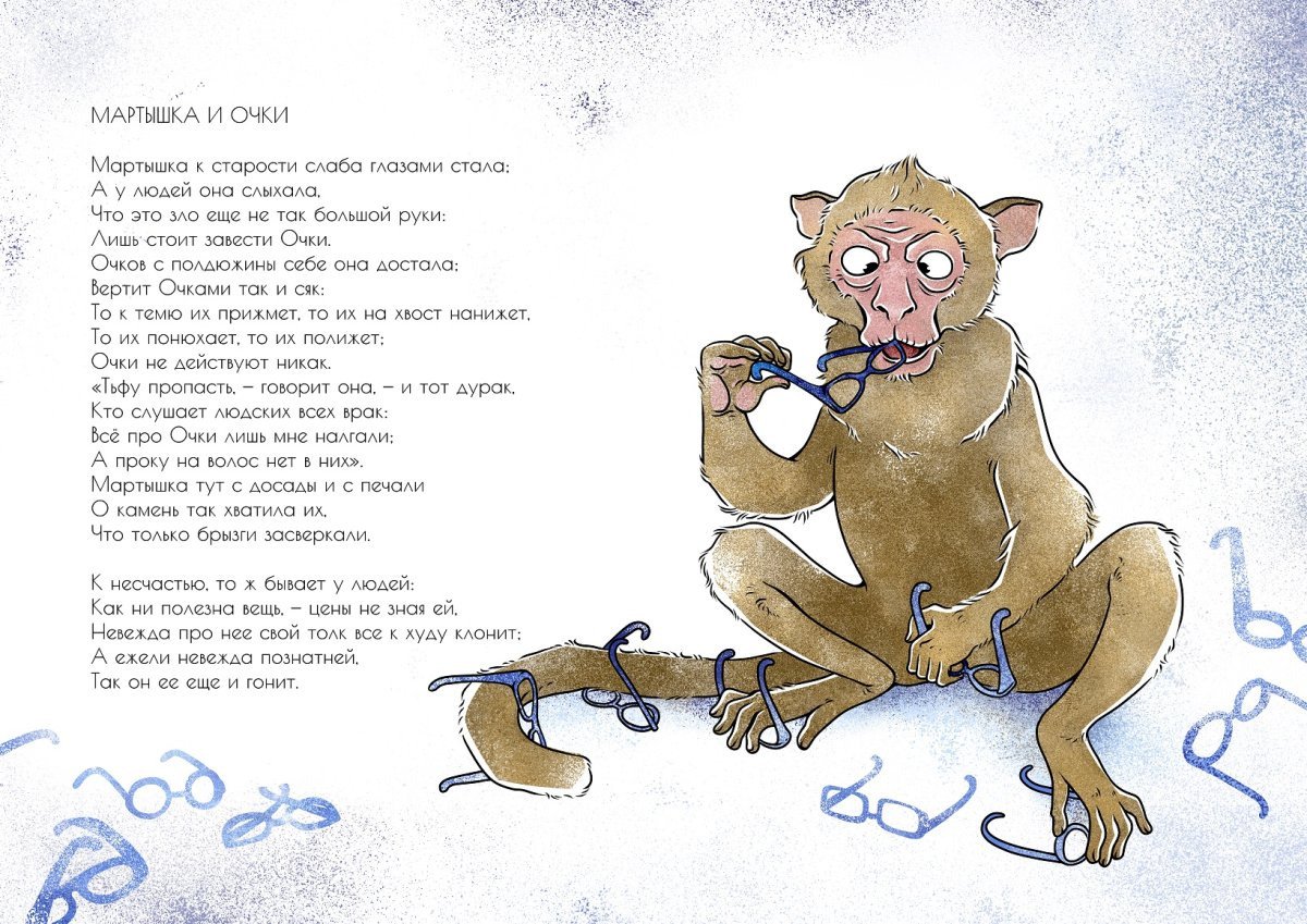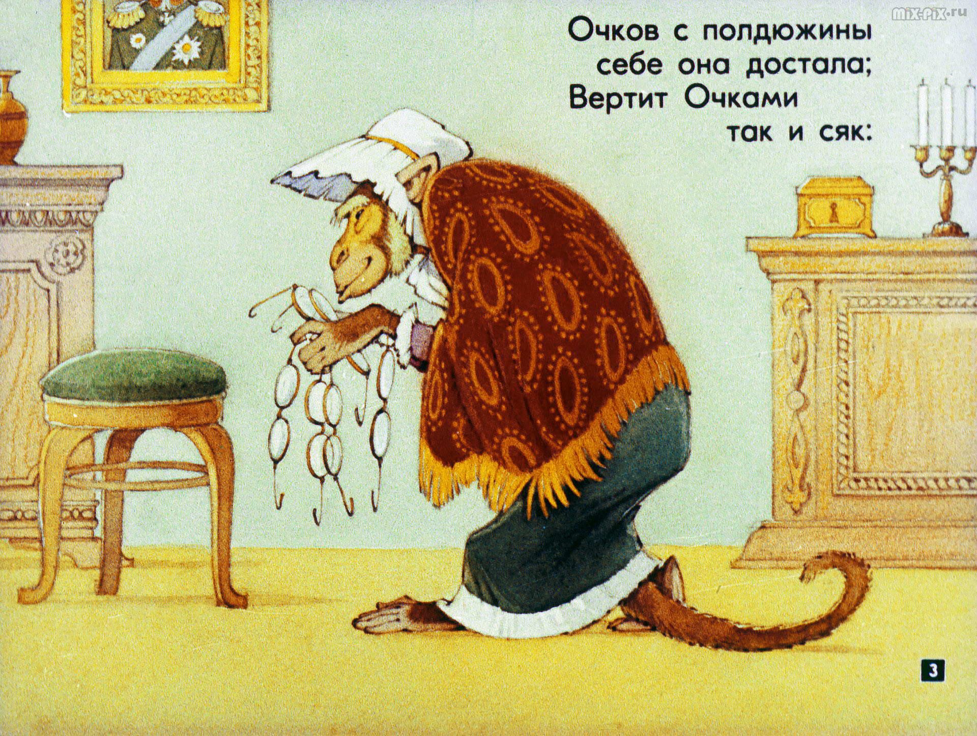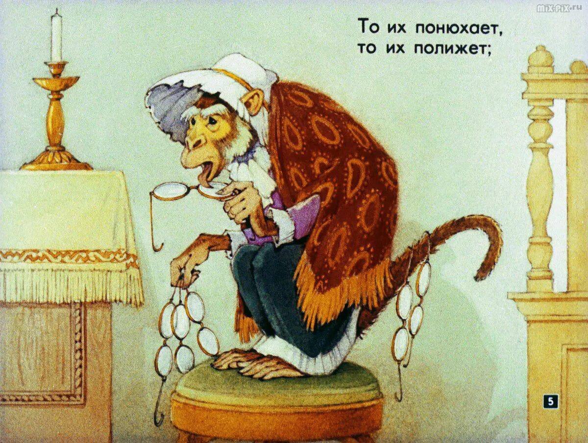 Иллюстрация к басне Крылова мартышка и очки 3 класс