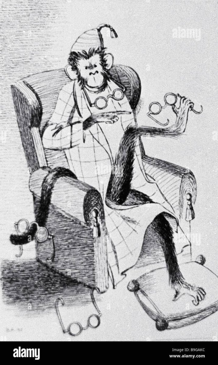 Иллюстрация к басне Крылова мартышка и очки карандашом