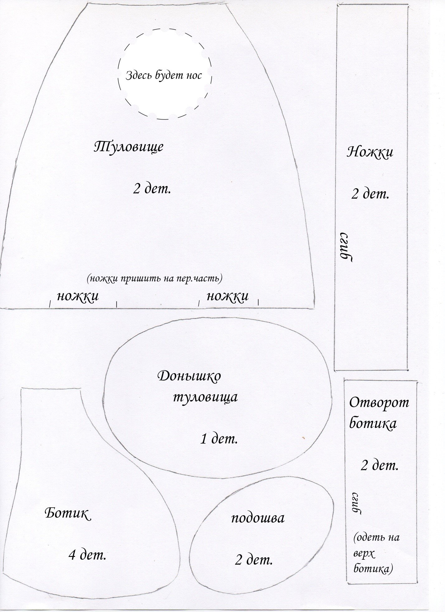 Выкройка гнома на ножках