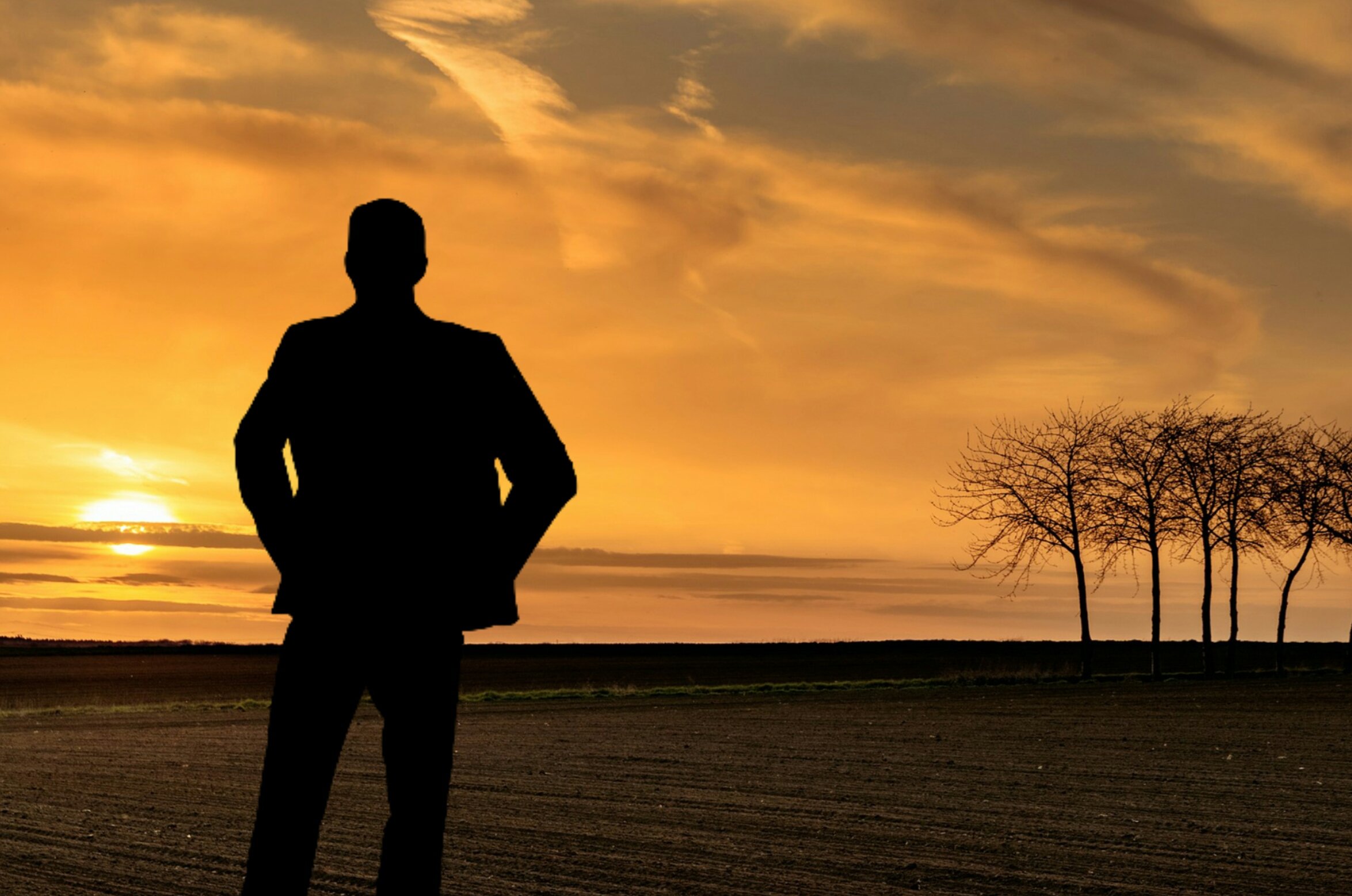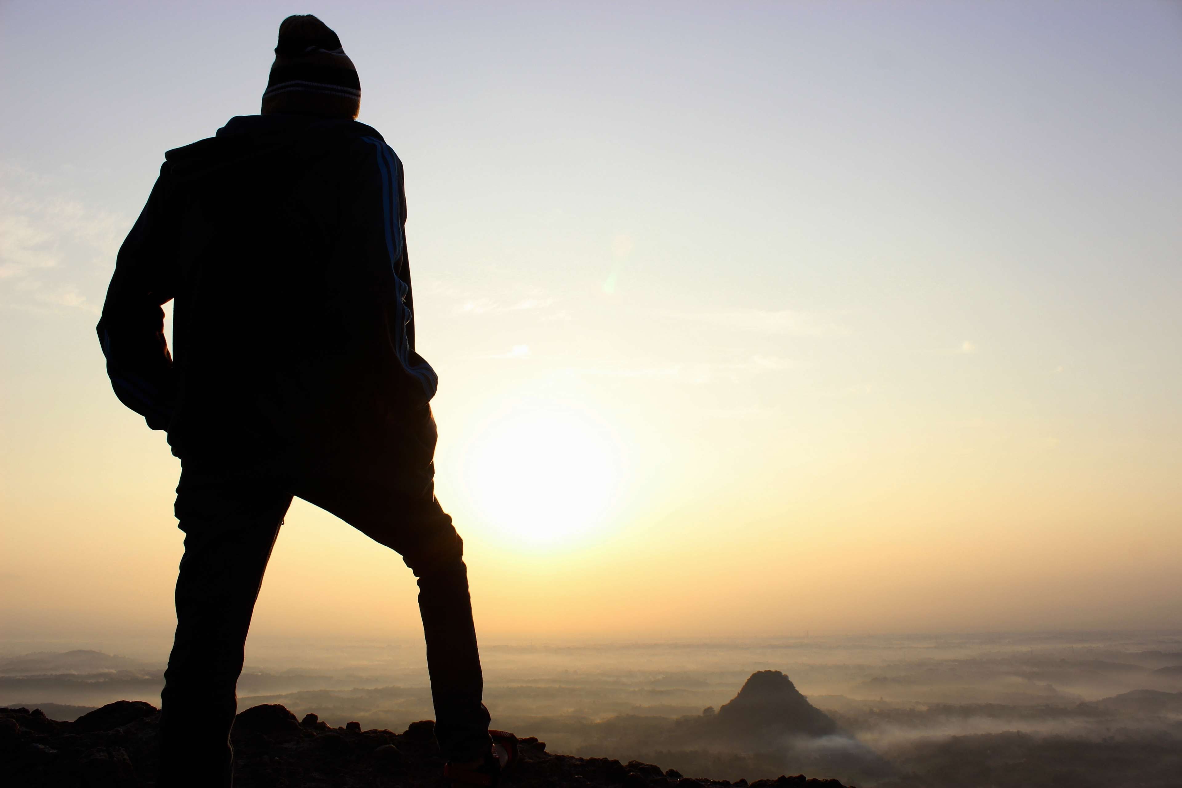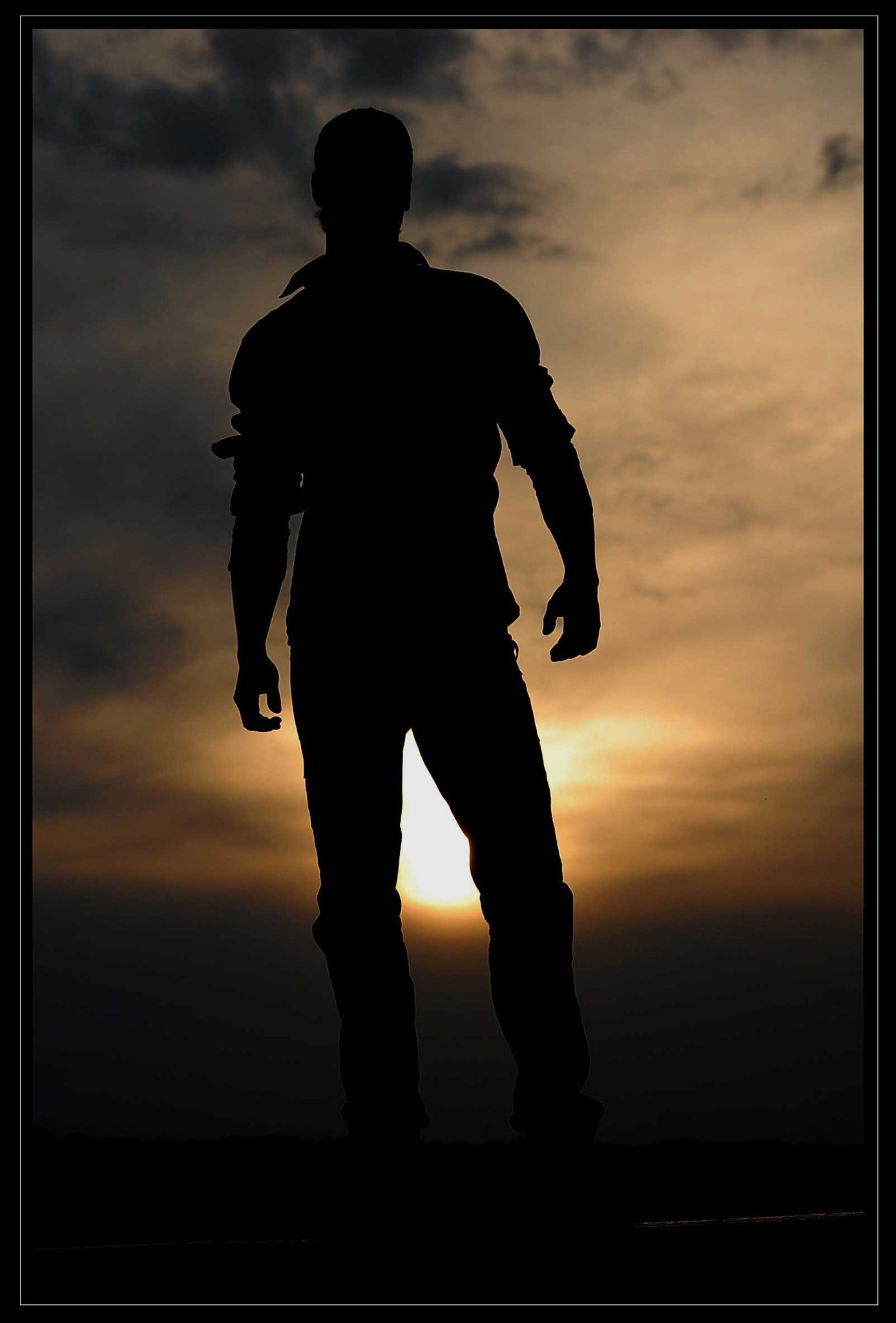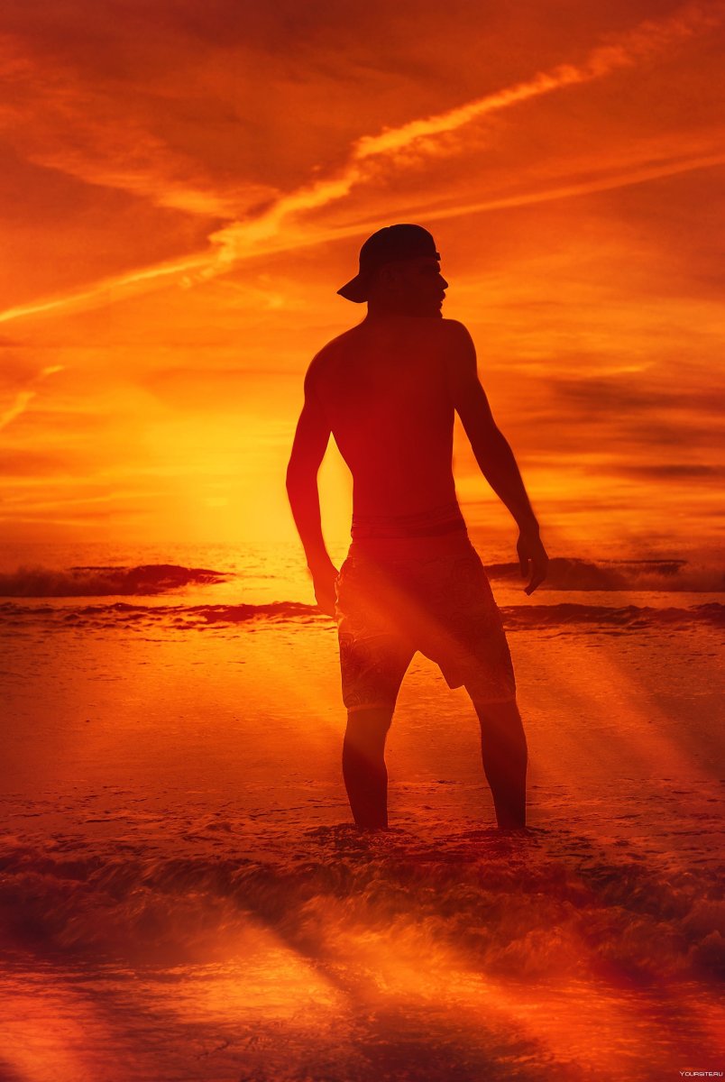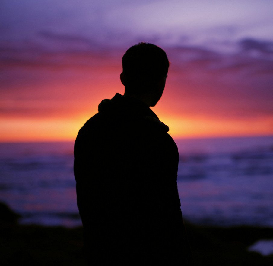 Мужской силуэт на фоне заката