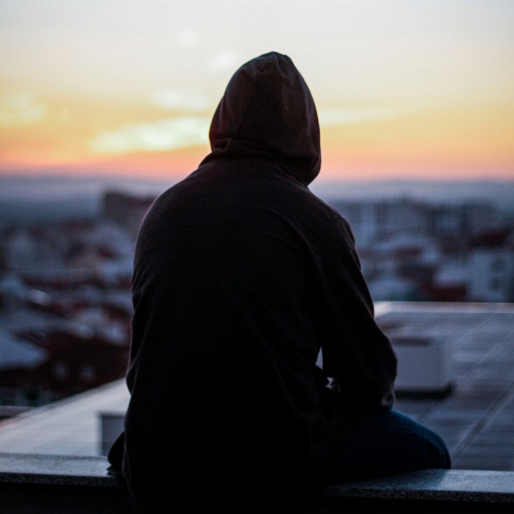 Парень в капюшоне сидит