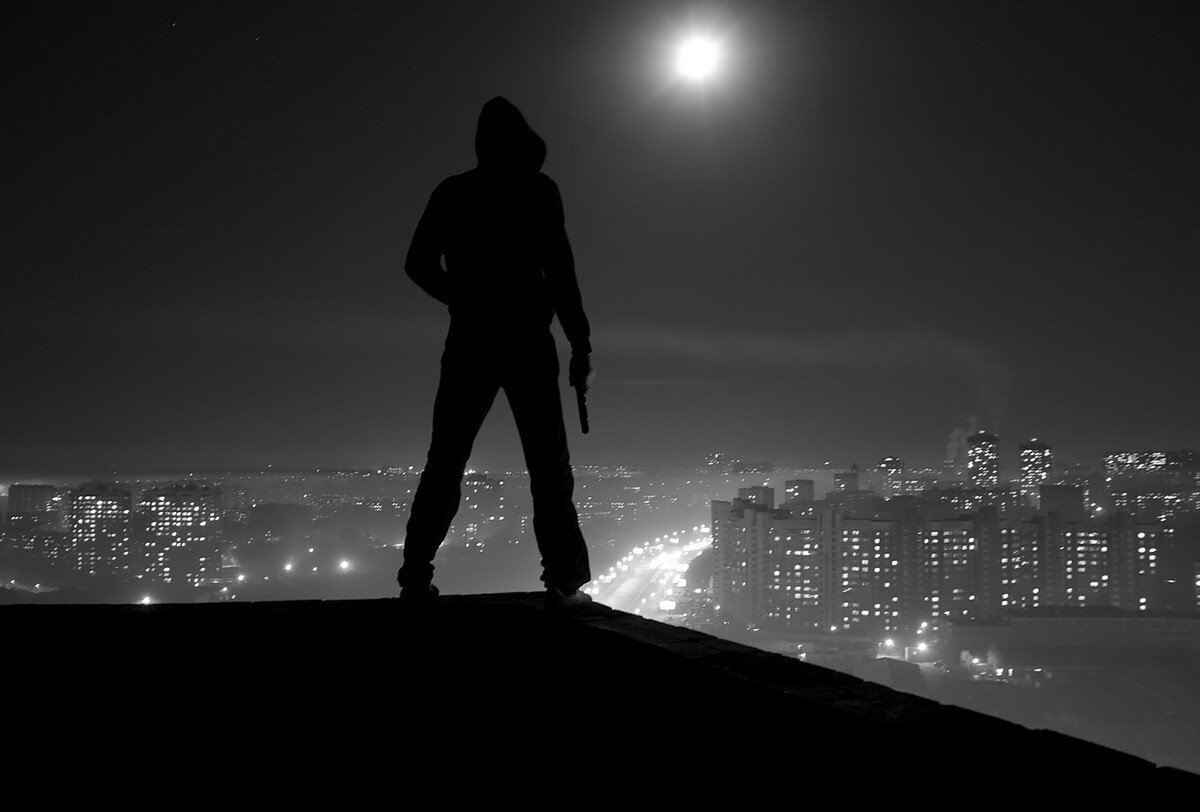 Мужской силуэт в темноте