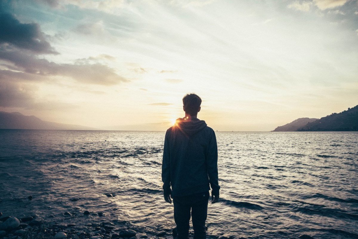 Силуэт мужчины на море