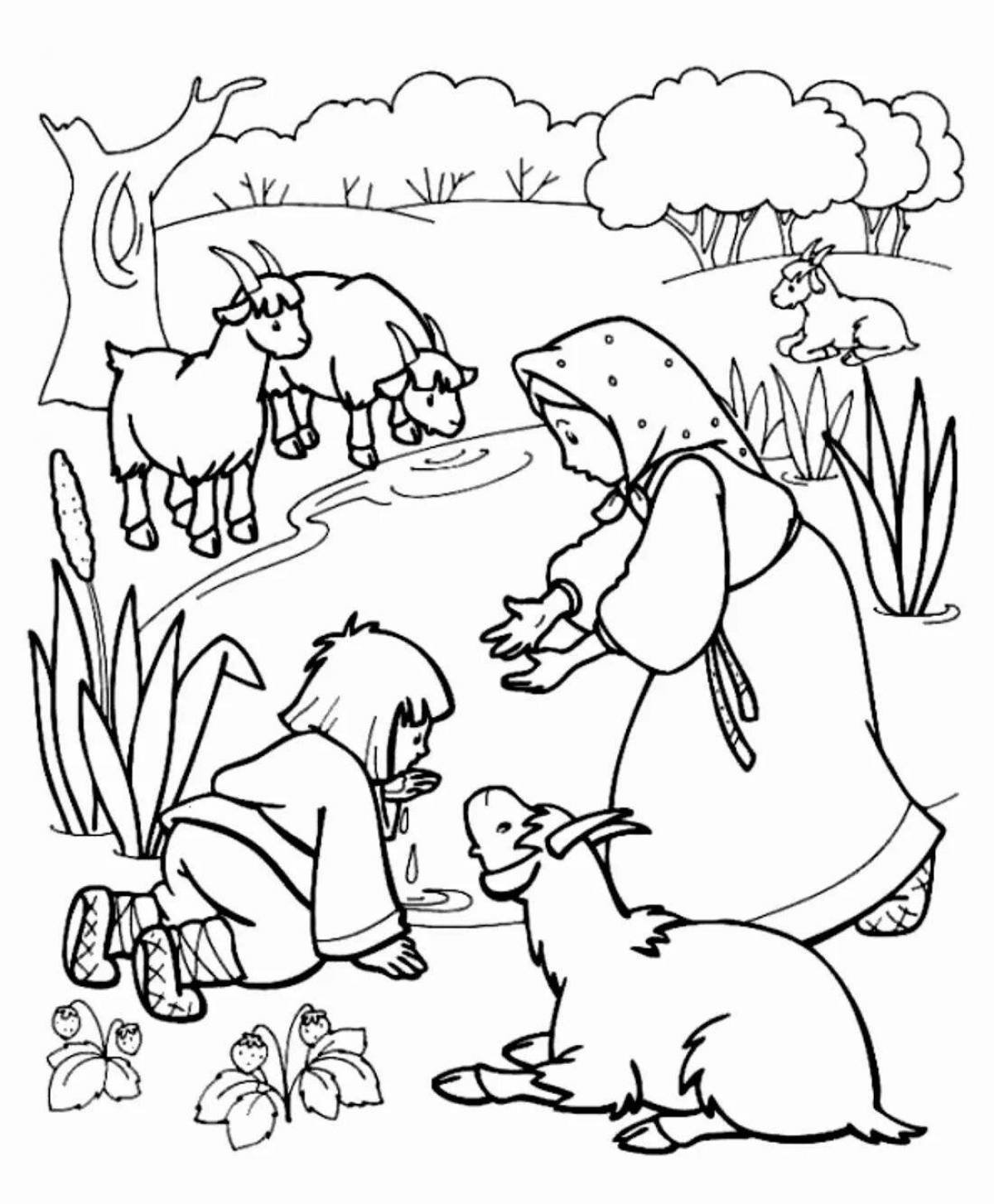 Раскраска по сказке сестрица алёнушка и братец Иванушка