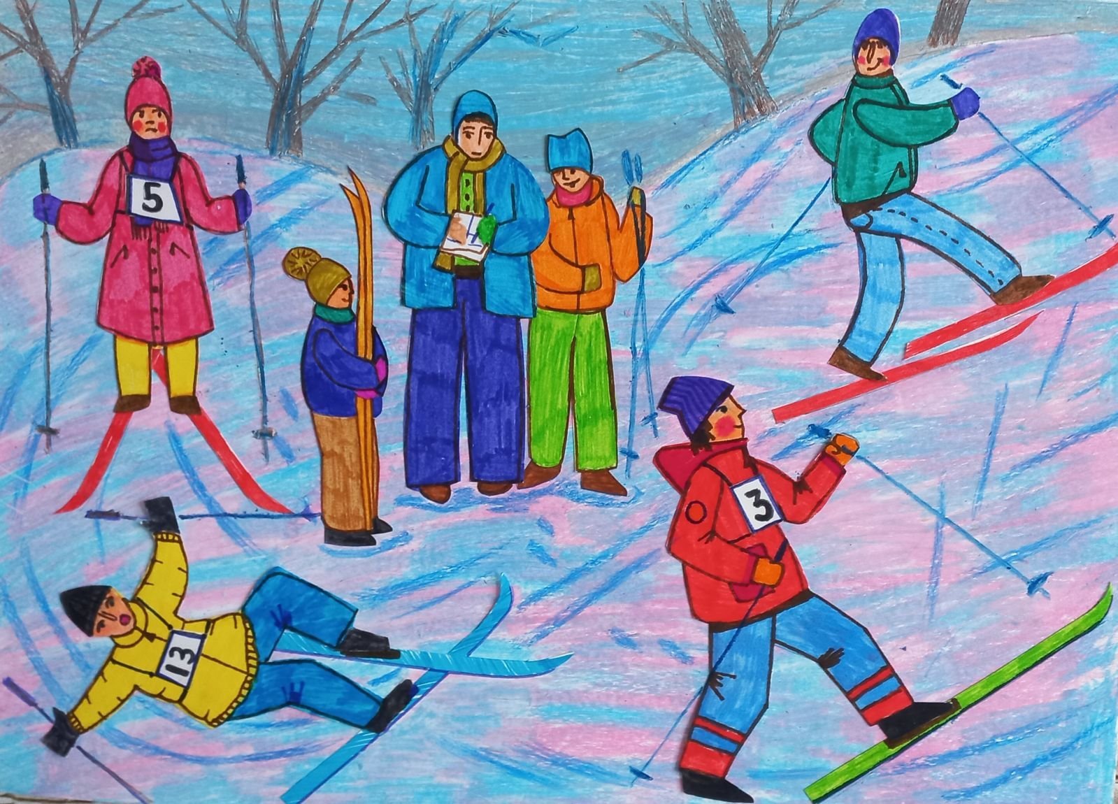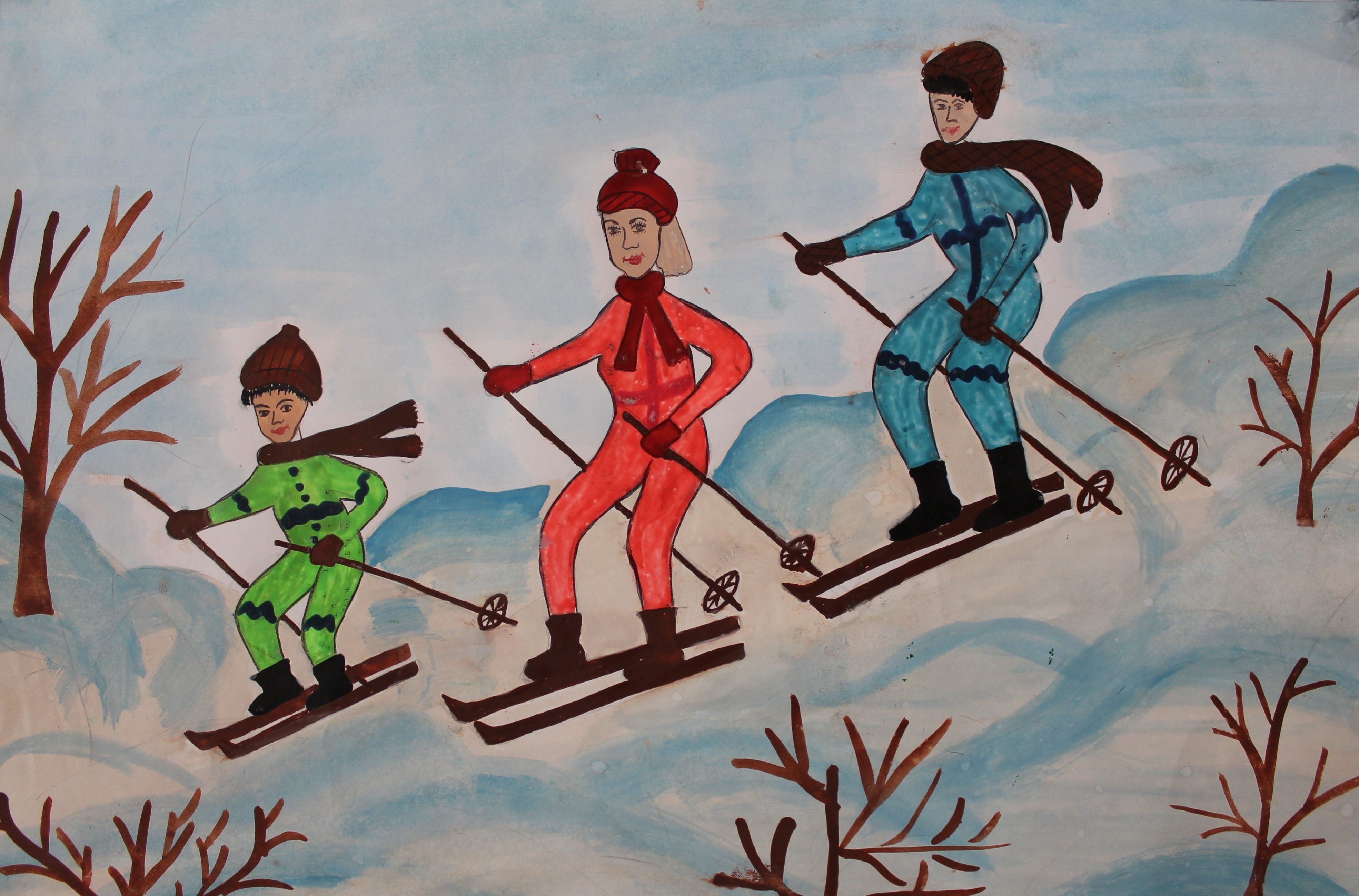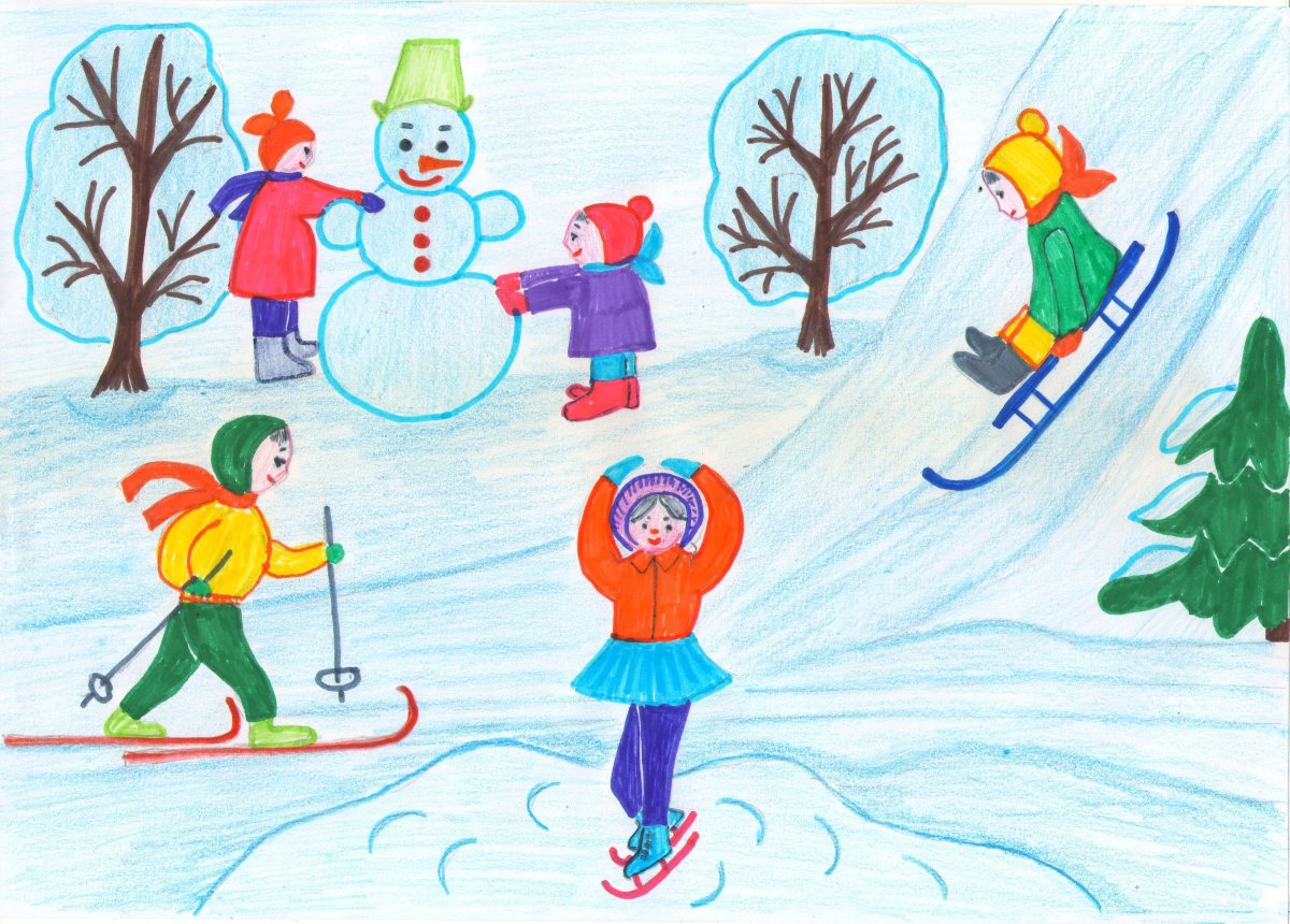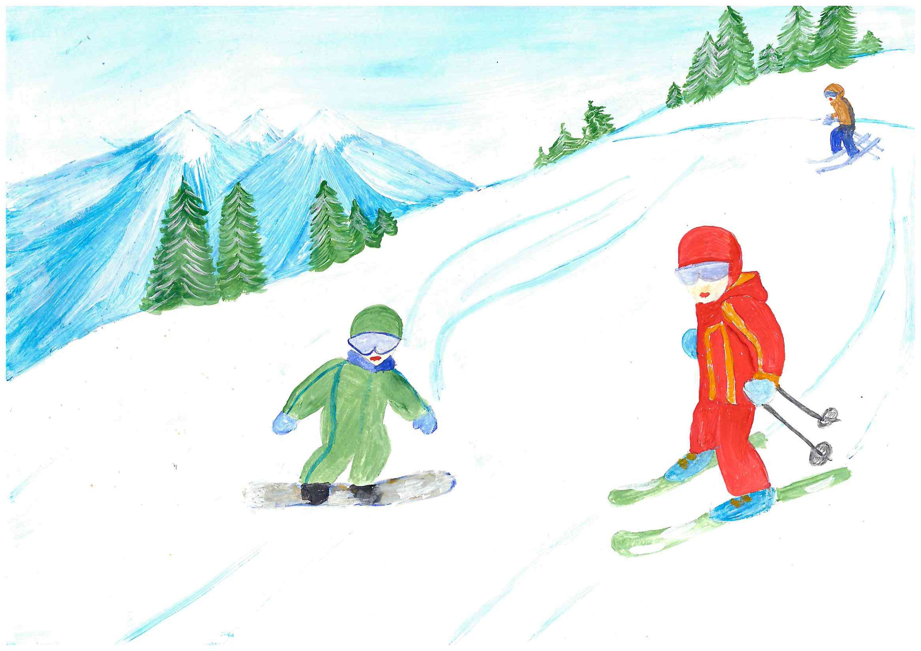 Детские рисунки зимний спорт