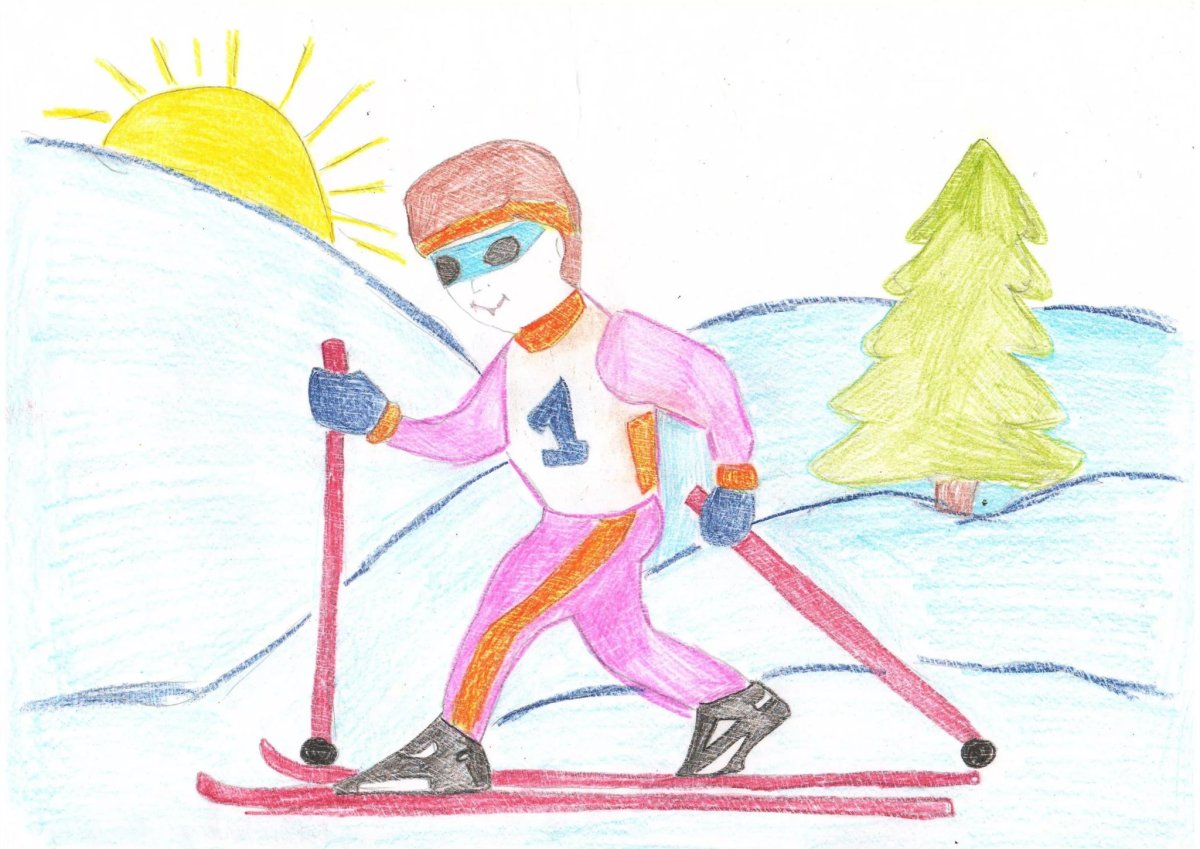 Лыжник рисунок для детей