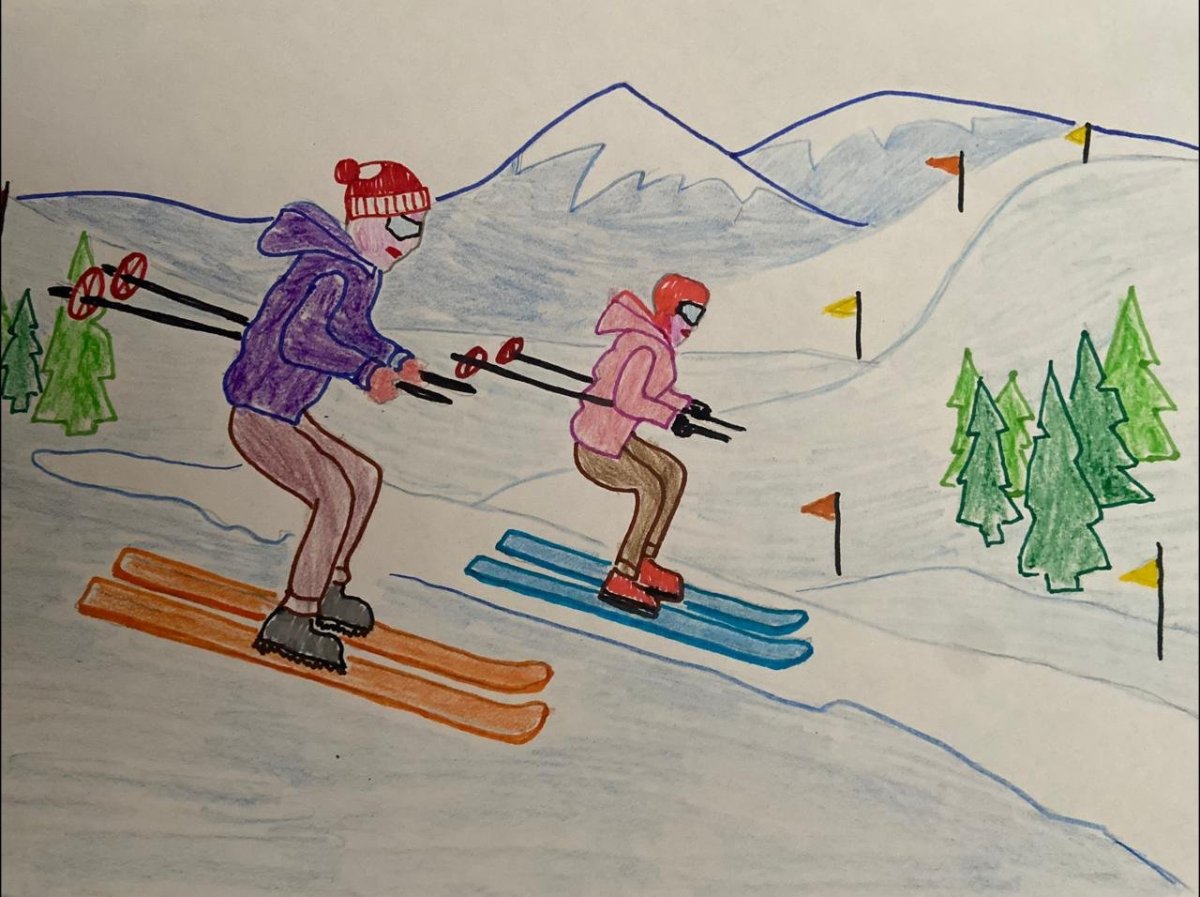 Рисунок пастелью зимний спорт