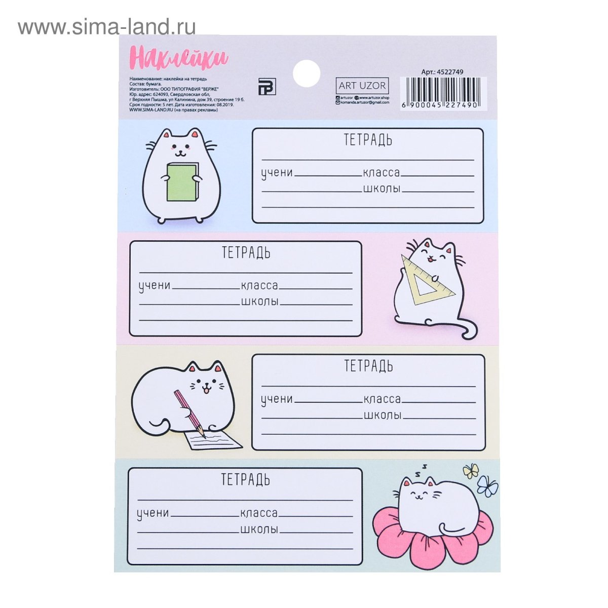 Наклейки для подписания тетради
