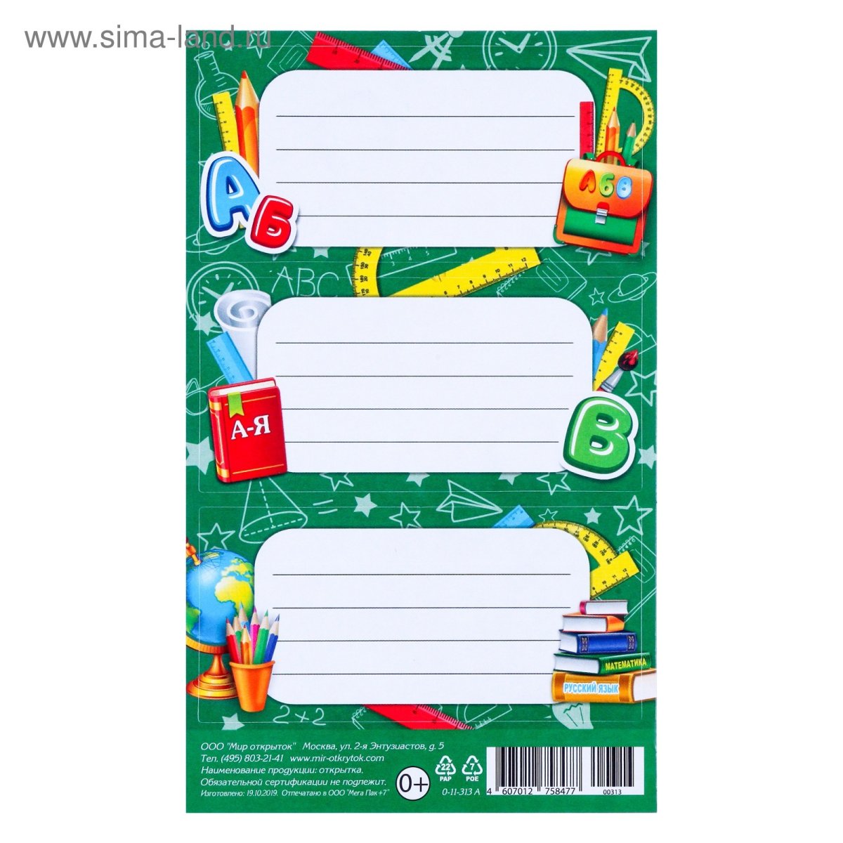 Этикетки для школьных тетрадей