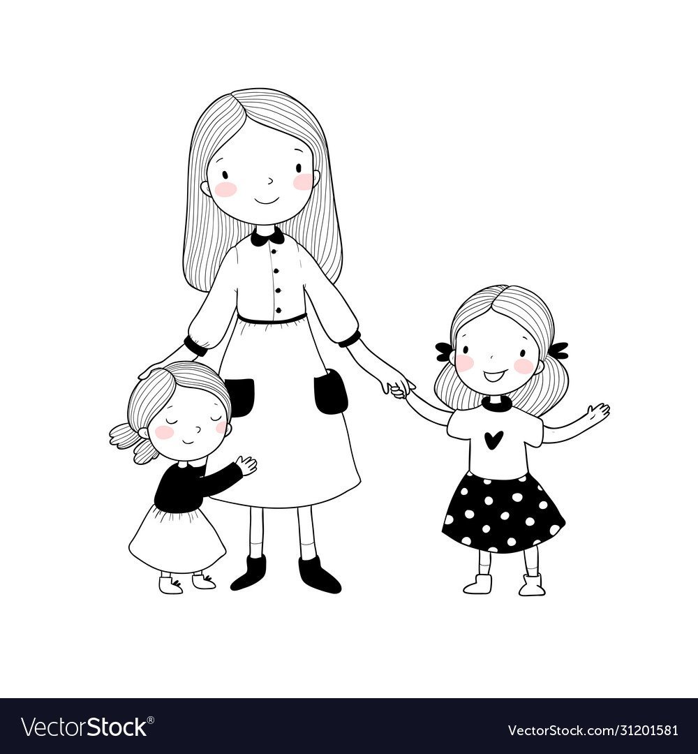 Мама и две дочки рисунок