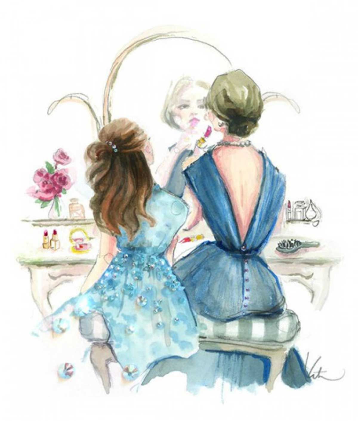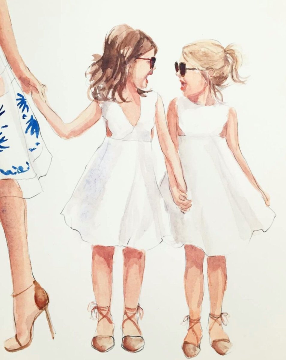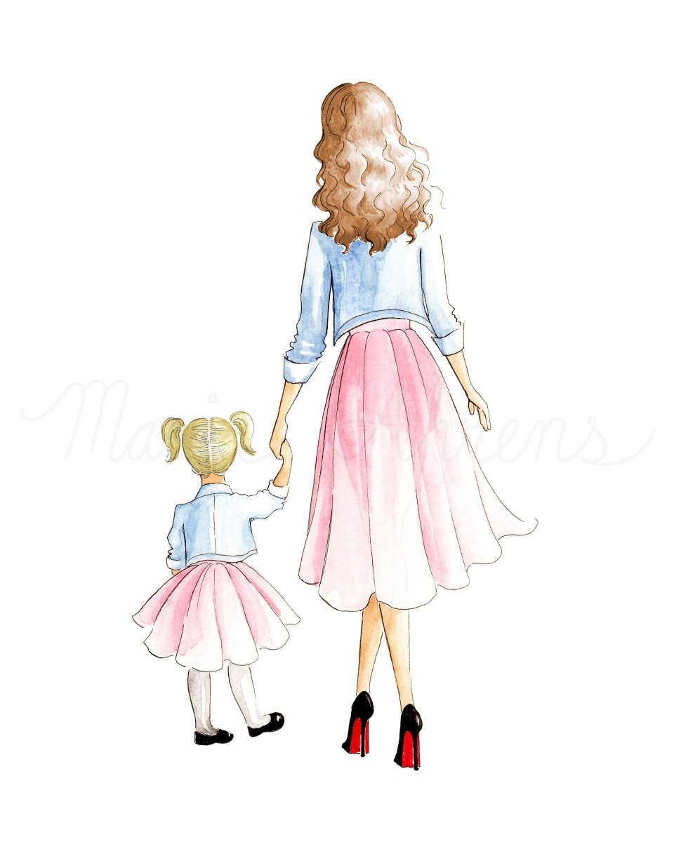 Фэшн иллюстрация мама и дочь