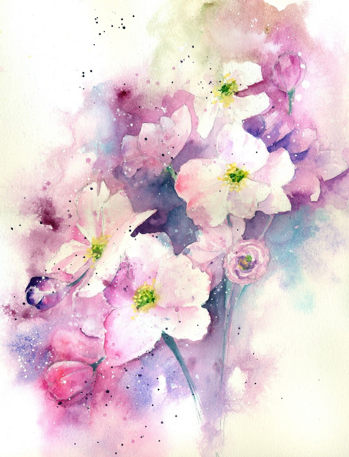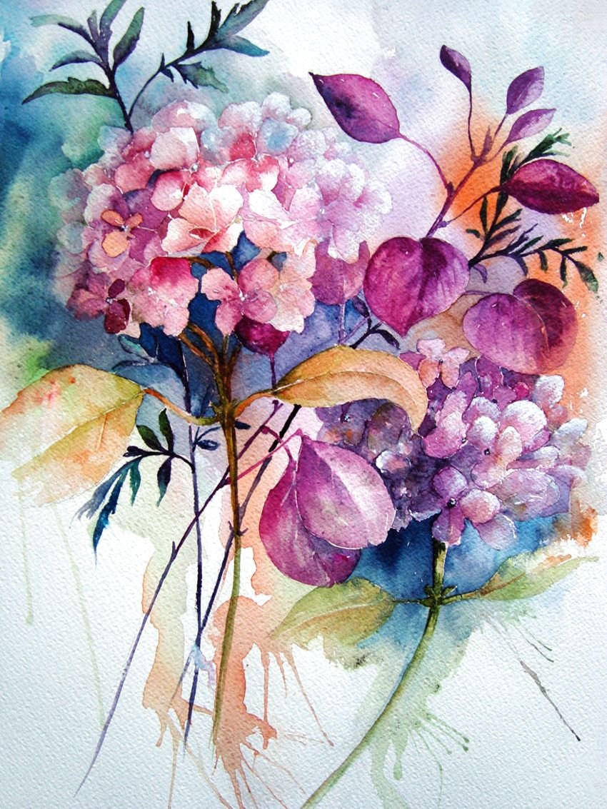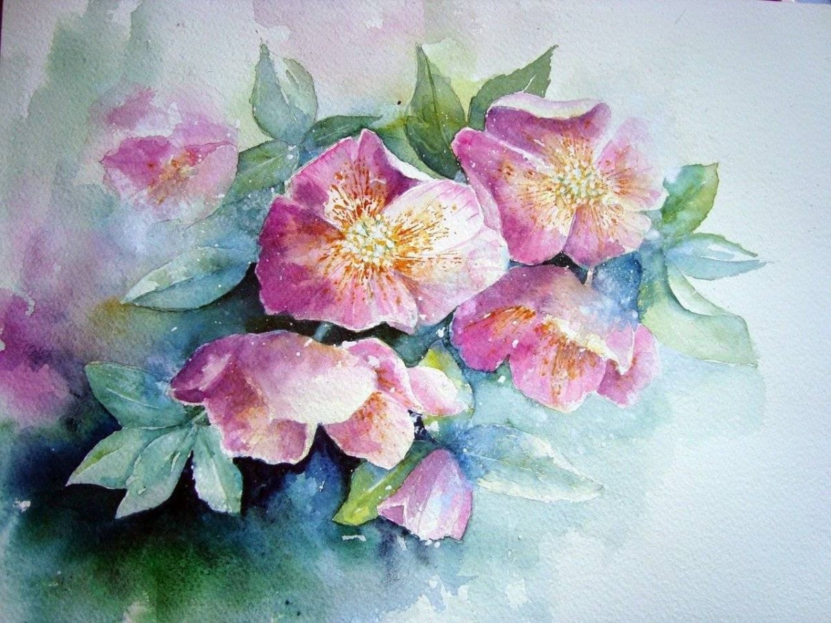 Цветы нарисованные акварелью