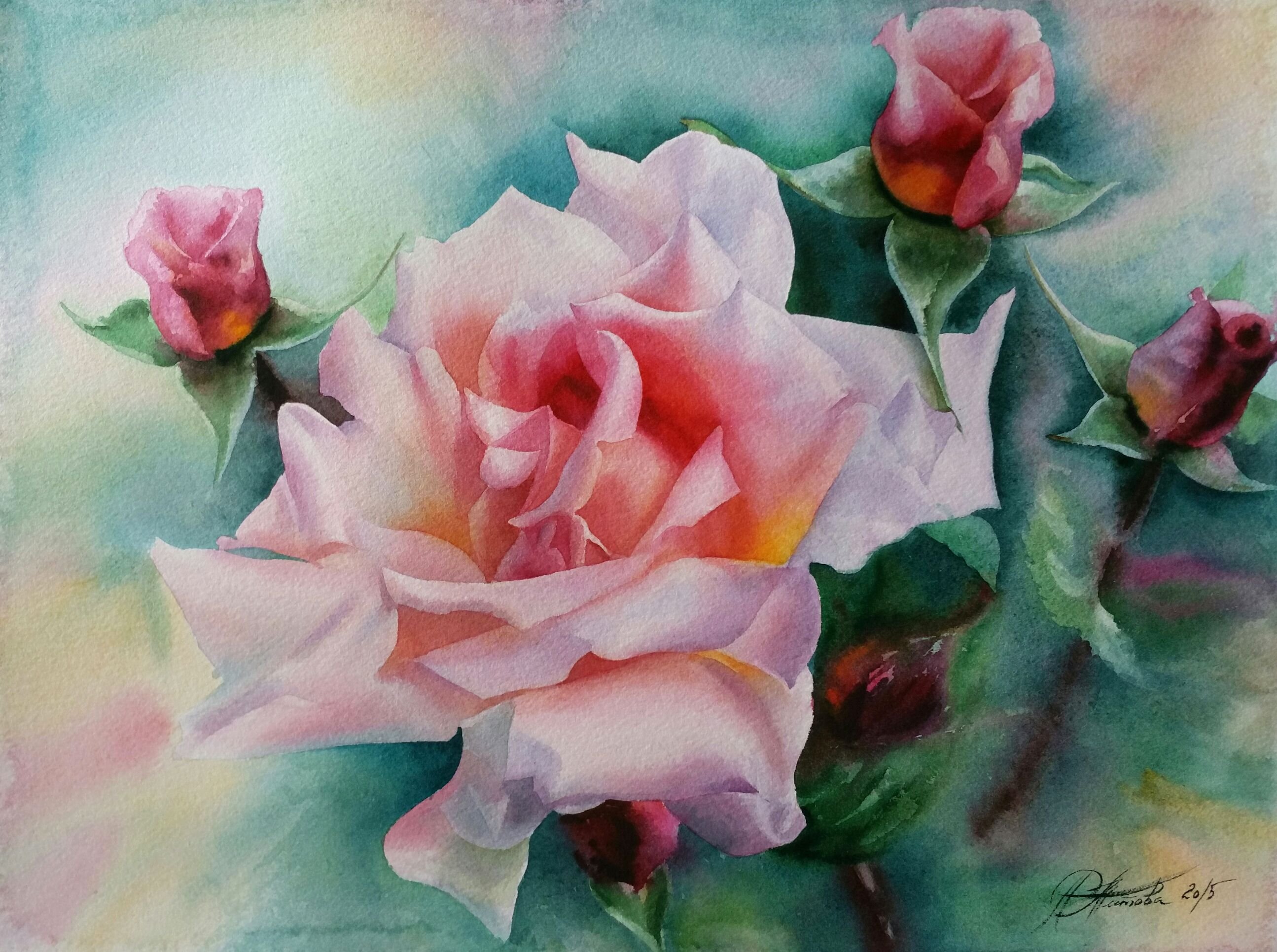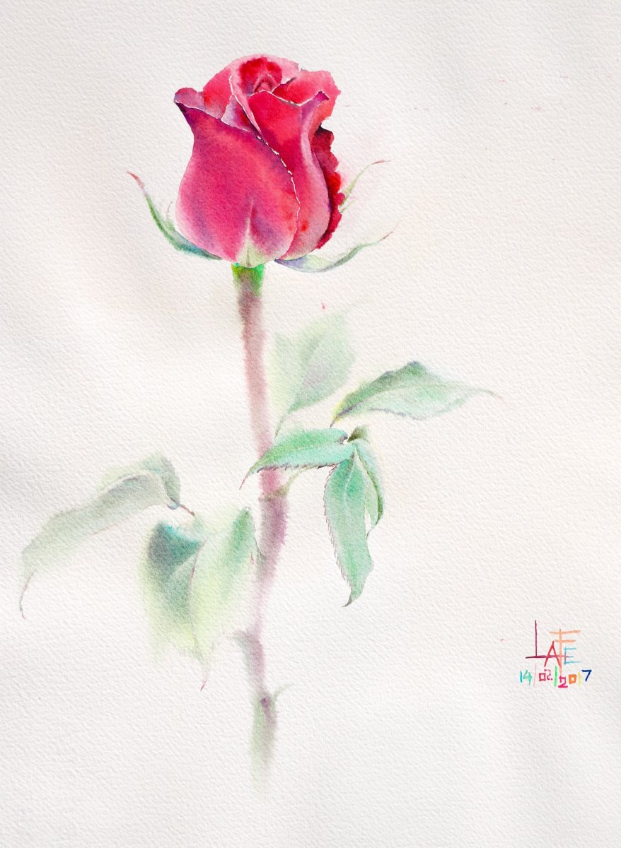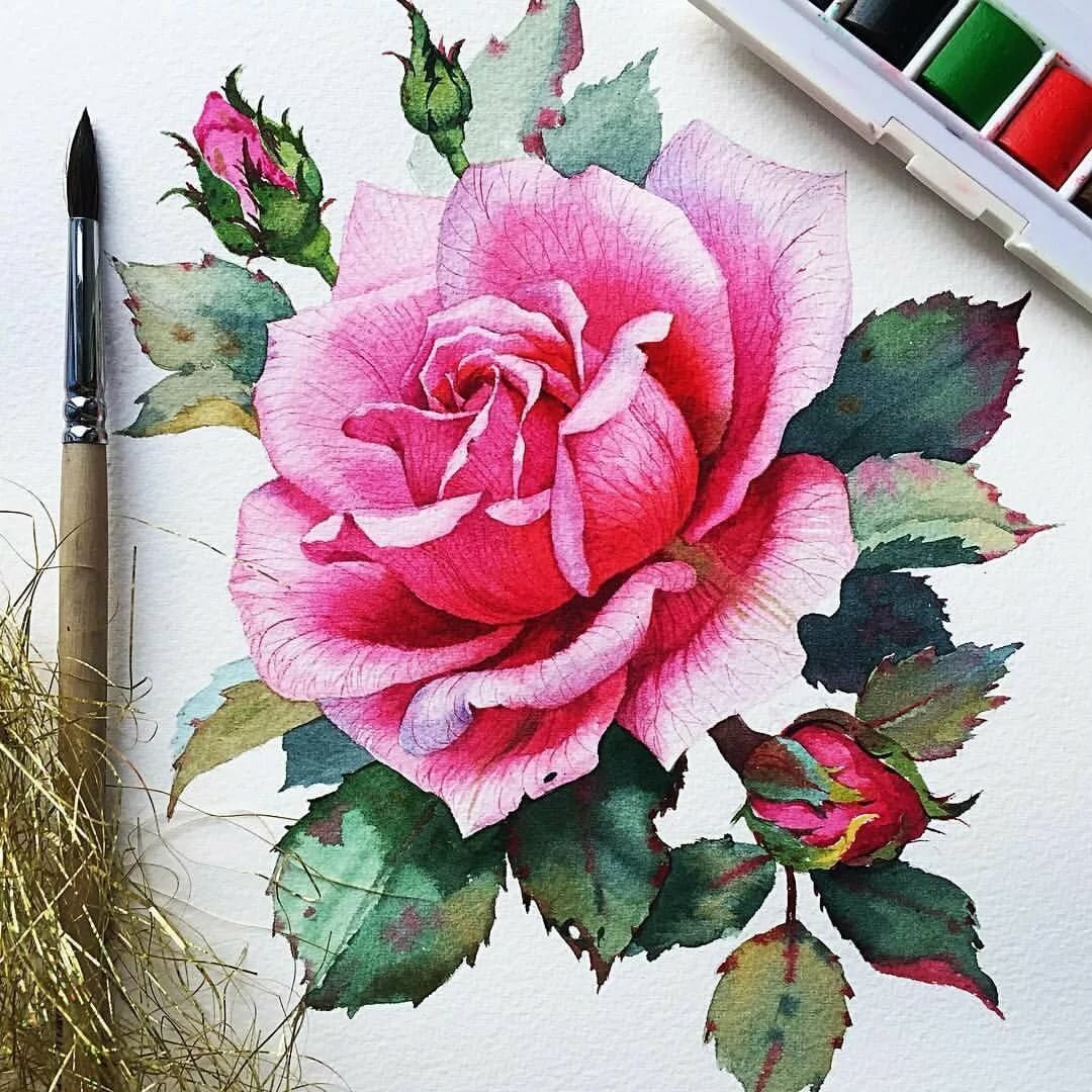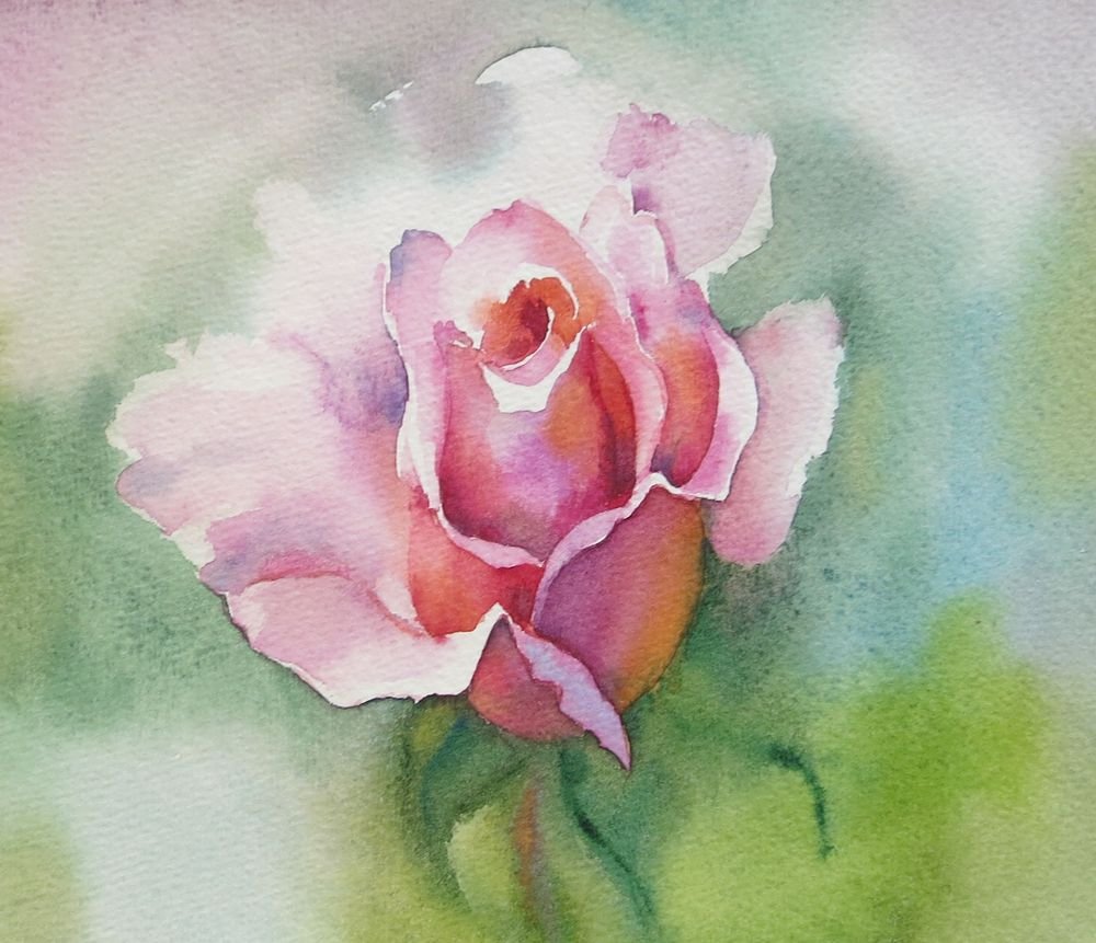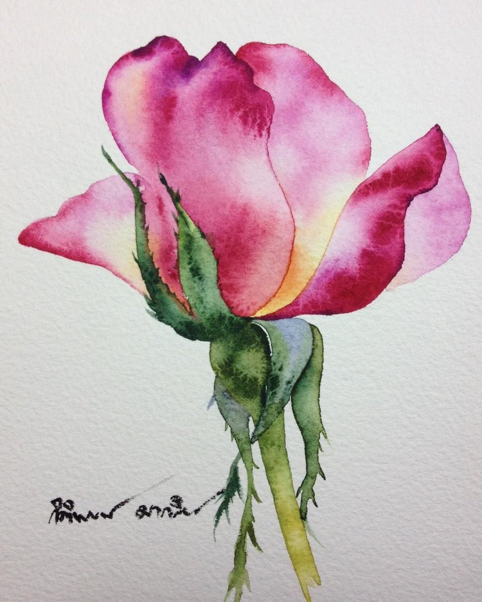 Роза акварелью для начинающих