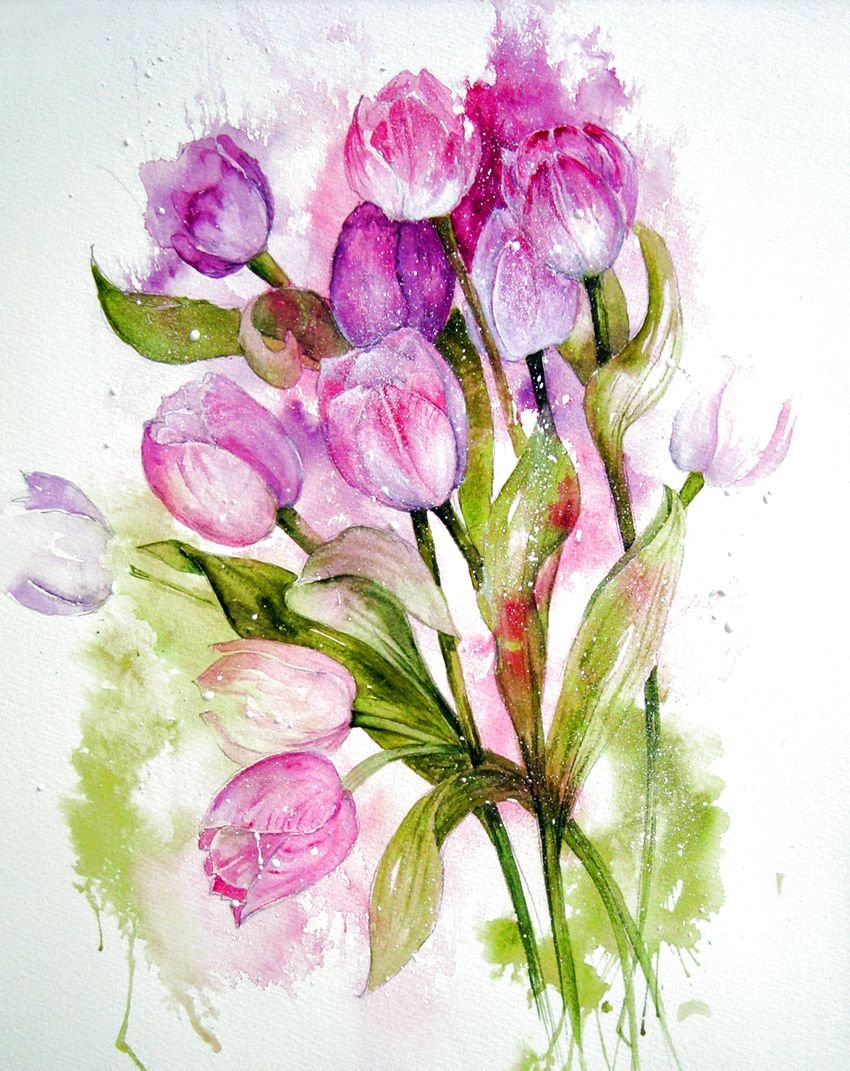 Тюльпаны акварелью