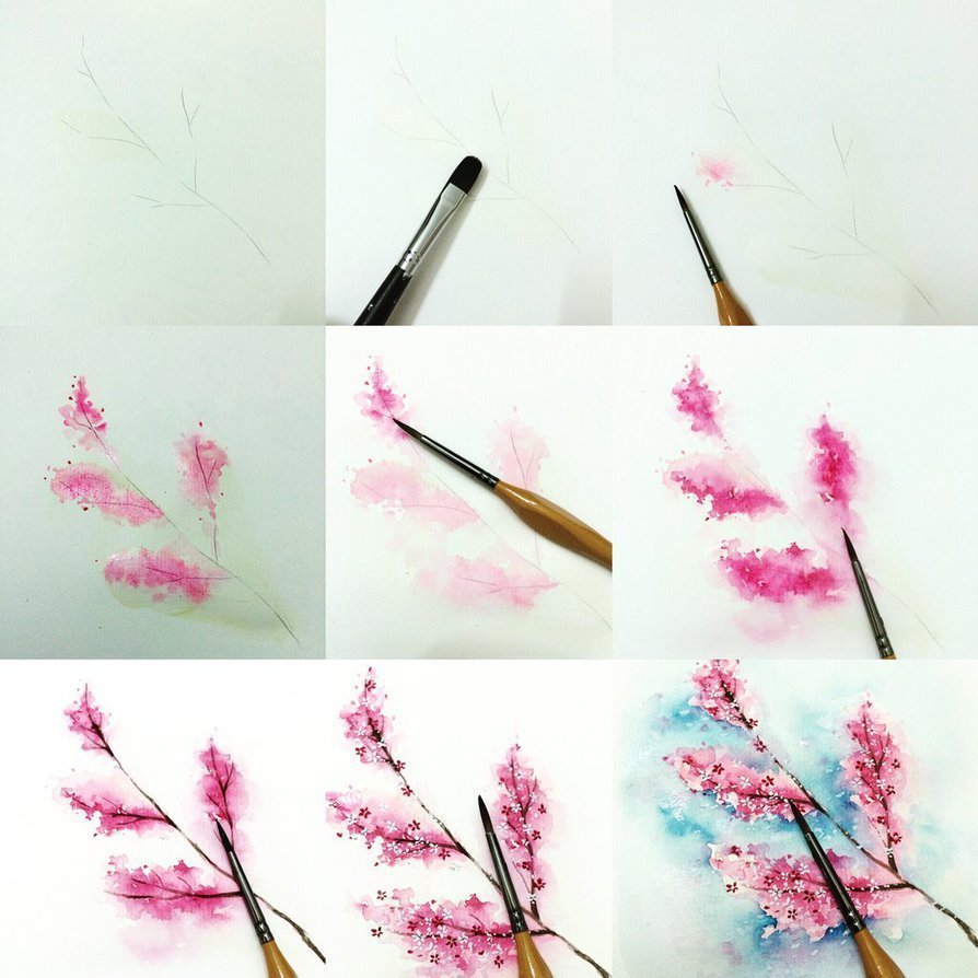 Схемы рисования цветов акварелью