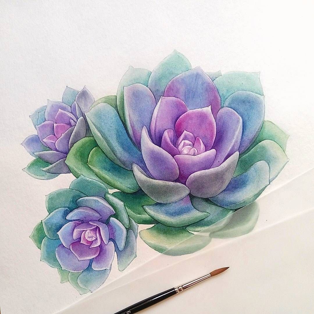 Суккуленты акварель