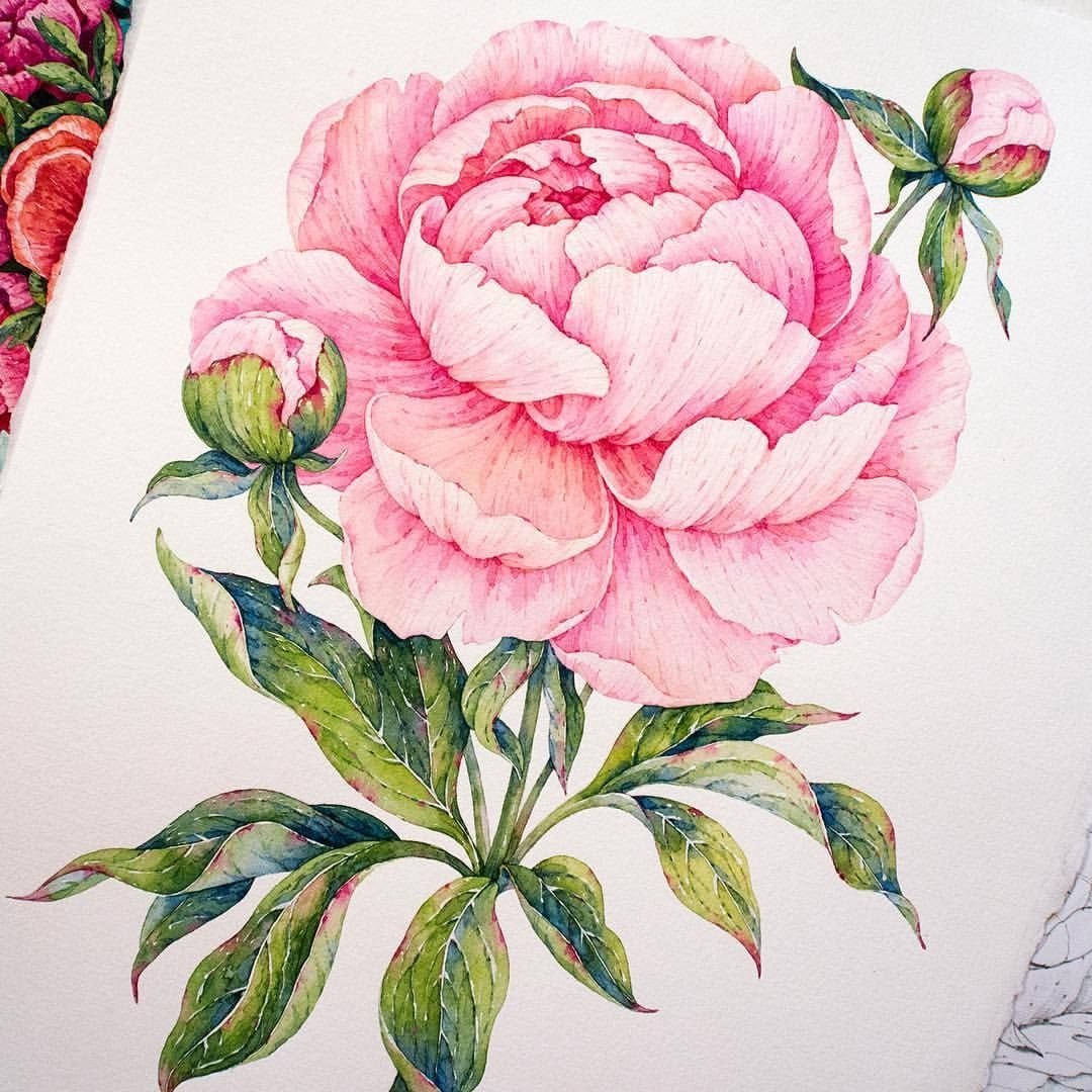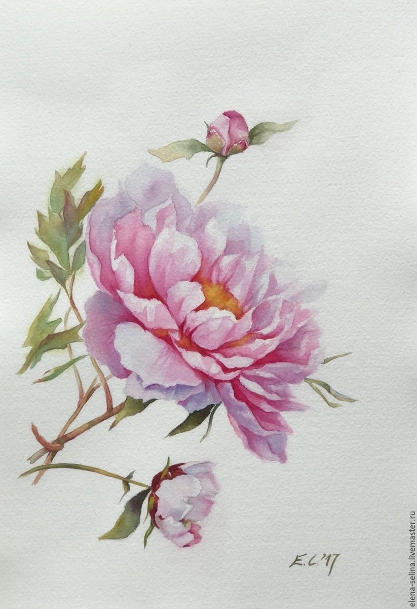Пион Вероника Калачева акварель