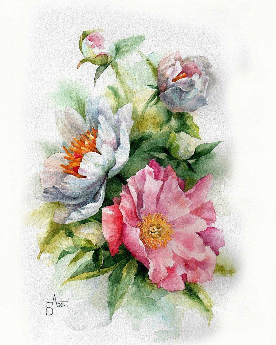 Акварель Тюлькина пионы