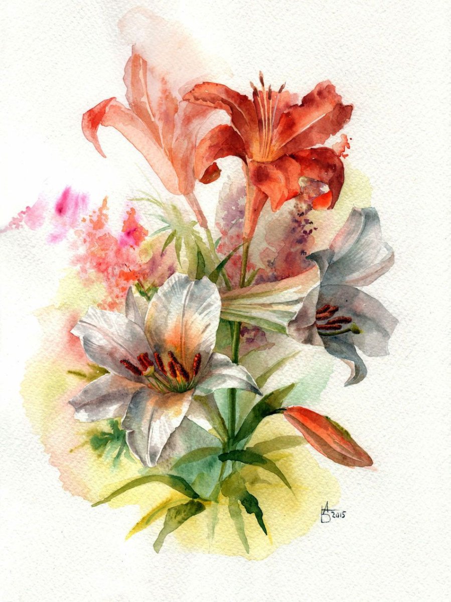 Красивые рисунки цветов акварелью