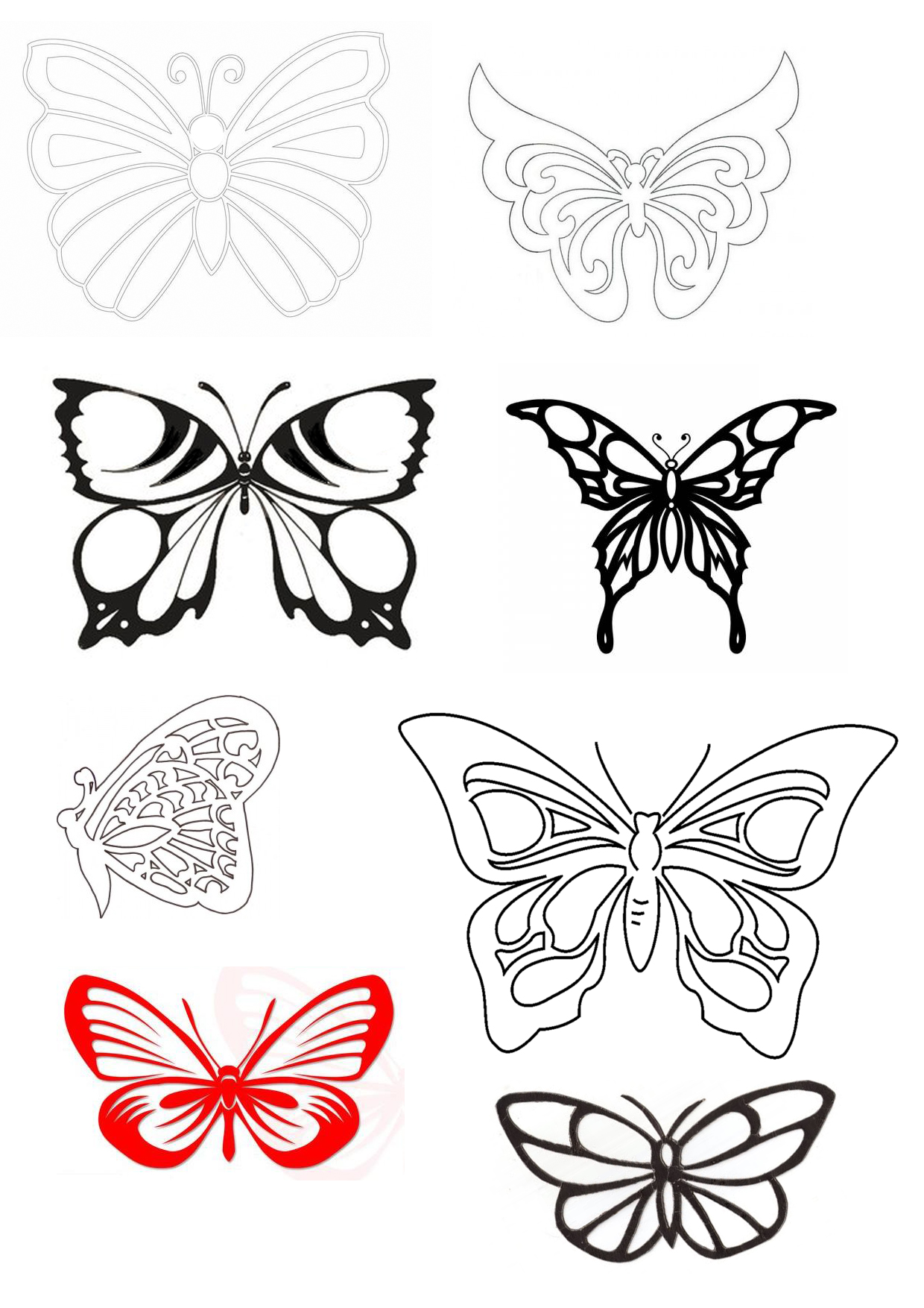 Контуры бабочек для декора