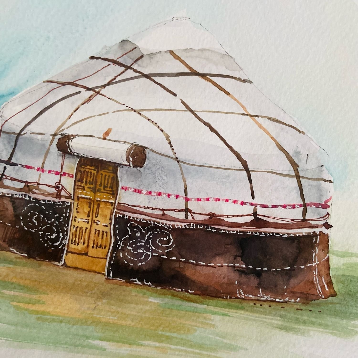 Рисунок юрты в степи