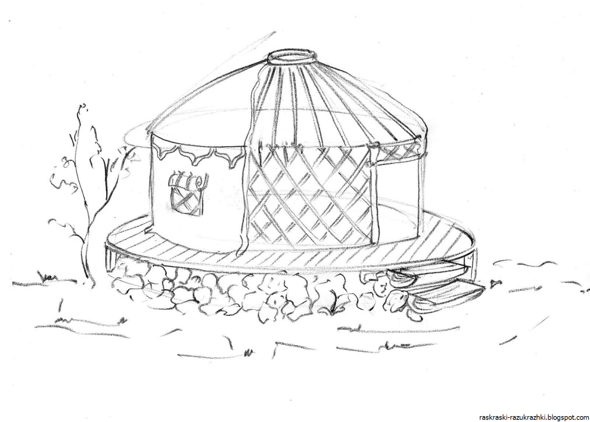 Юрта раскраска для детей