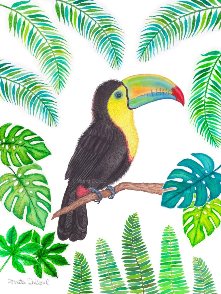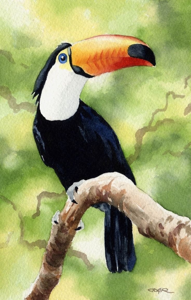 Тукан акварелью