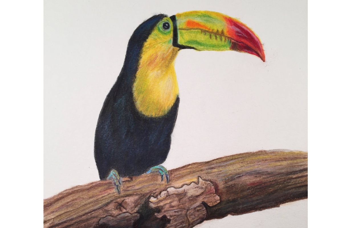 Рисунок тукана цветными карандашами