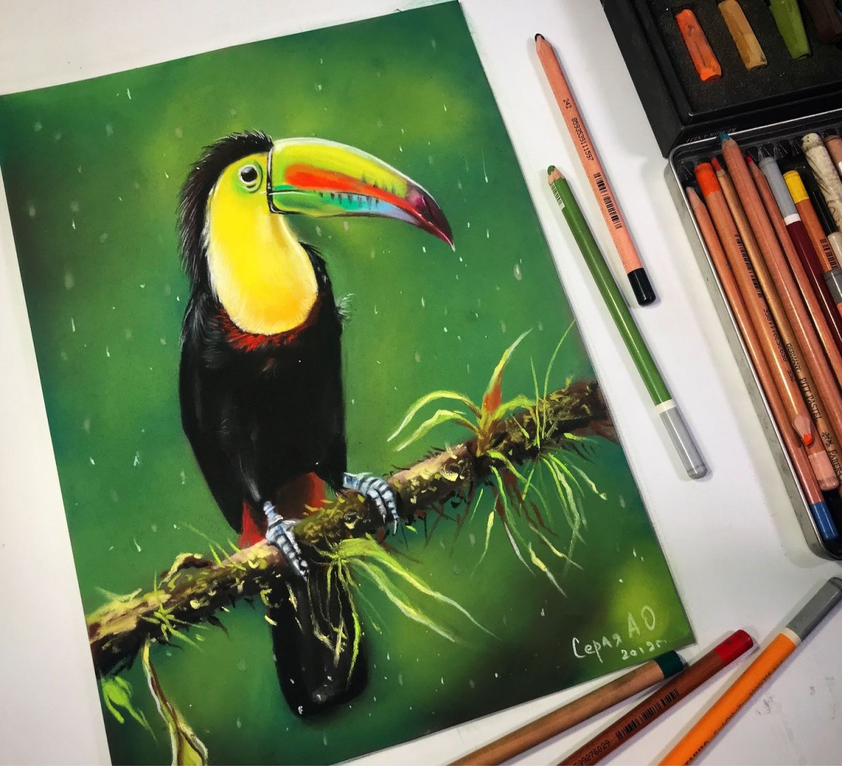Тукан пастелью
