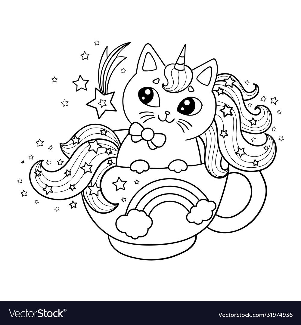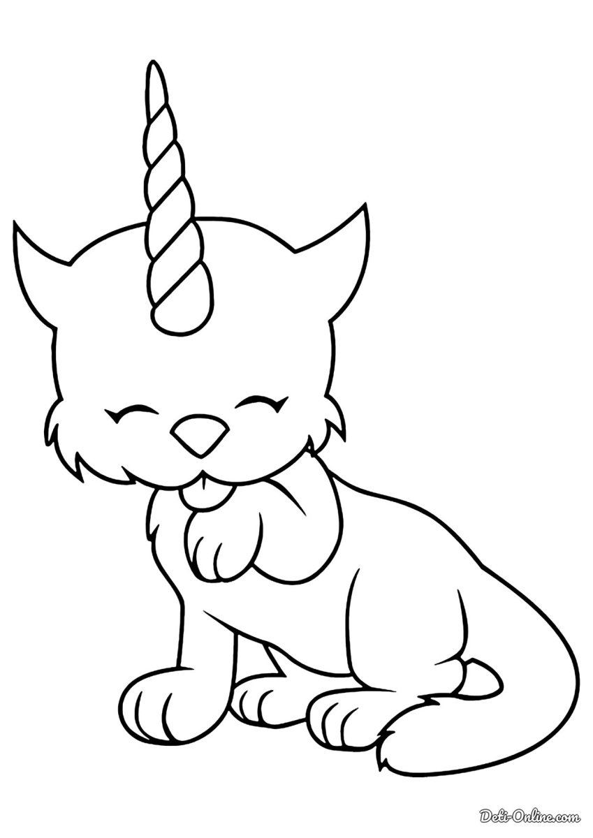 Картинки кошка Единорог раскраска