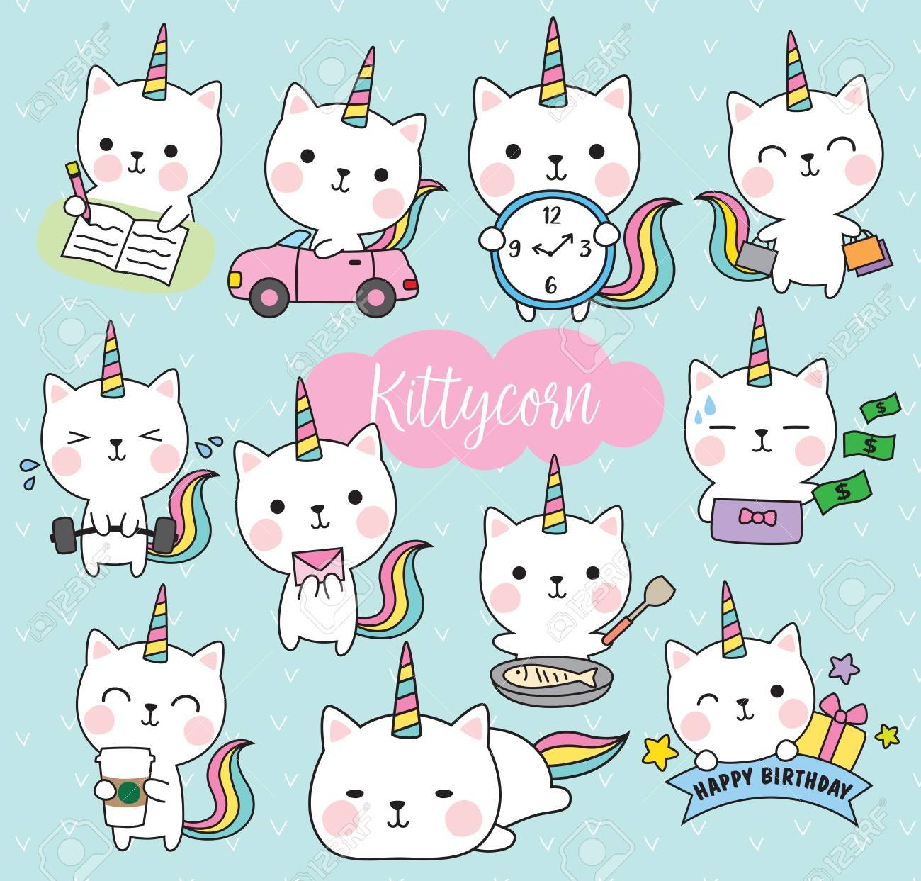 Кошечка Единорог вектор