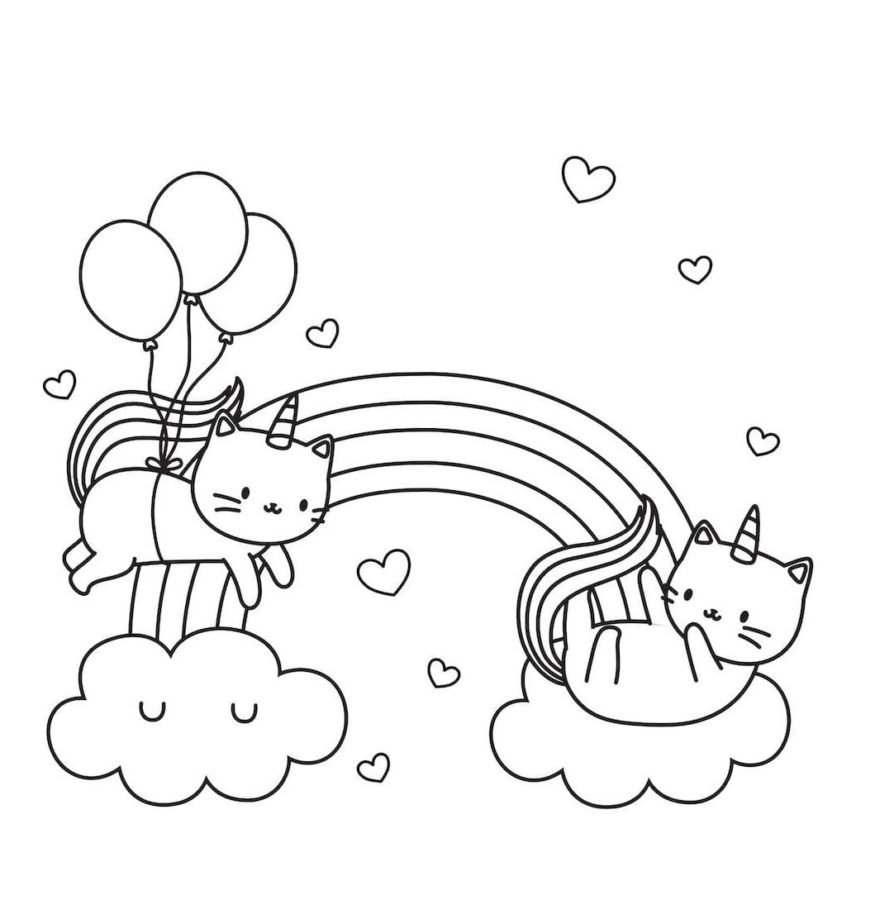 Раскраска Единорог кошка Радуга