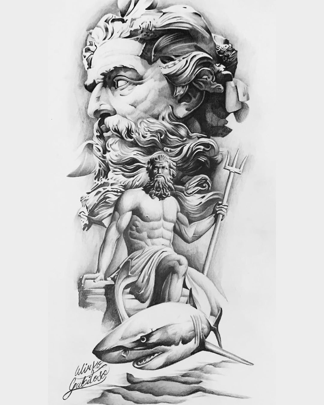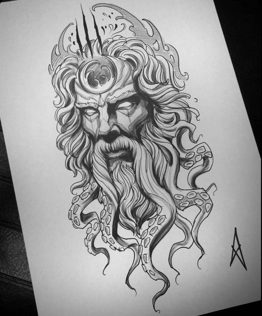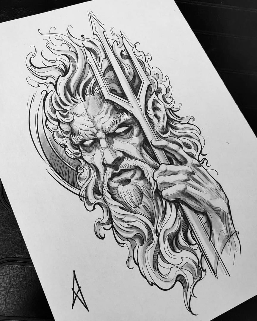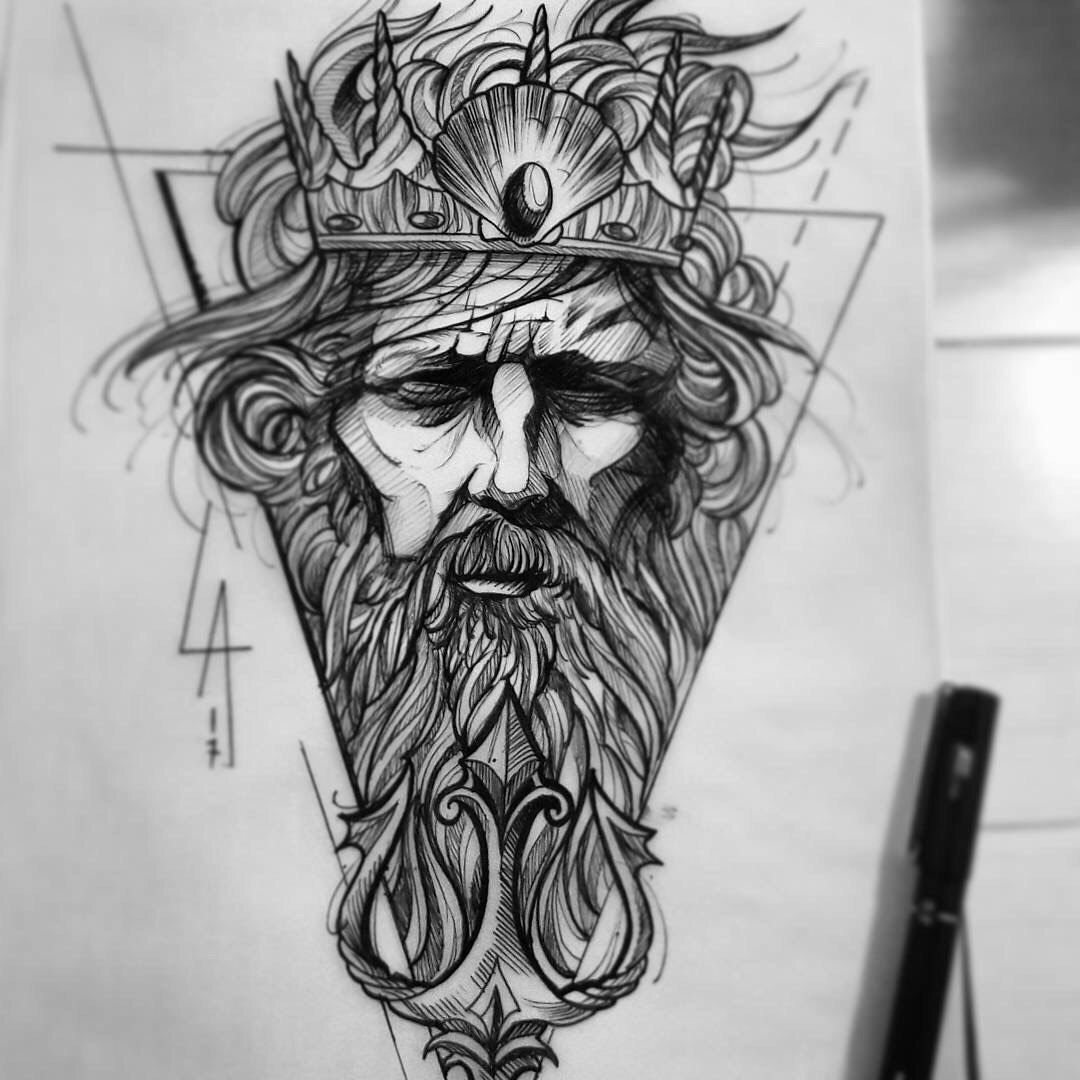 Посейдон тату эскиз