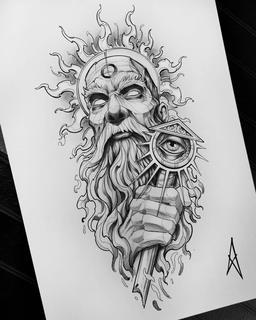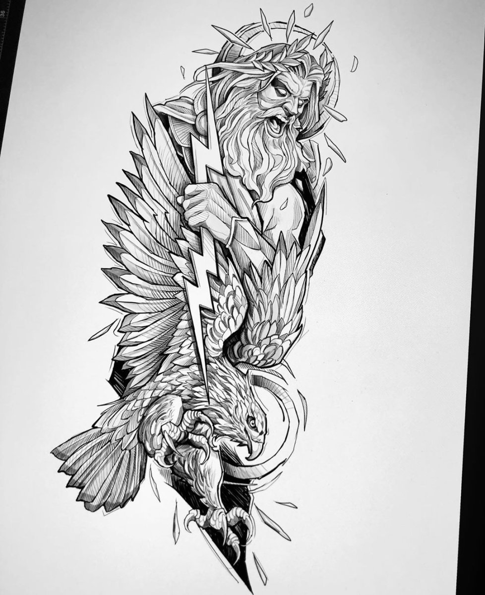 Зевс тату эскиз скетч