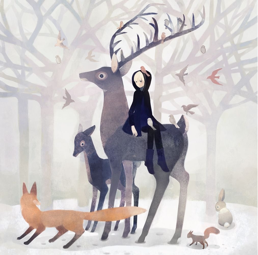 Девушка на олене арт